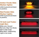 Rear LED Submersible Trailer Tail Light Kit for Boat Marker Truck Waterproof Red Item Description This 12v led trailer lights kit includes: 2Pcs square rear combination tail lights, 6Pcs Mini Oval side fender marker lights (2Red+4Amber), 1Pc 15.5 Inch Trailer 3rd brake identification tail light bar, 25ft wiring harness with 4-flat plug(long enough to reach end of trailer), license plate bracket, mounting hardware. This trailer led light kit has everything you need to upgrade your trailers at once; This boat trailer lights led submersible kit has multi functions: stop light, brake light, turn signal light, tail light, running light, rear reflex reflector, side marker light, side clearance lights, side reflex reflector, license plate illuminator, clearance Light, third 3rd brake light bar; Wiring Tips: white wire is ground, yellow wire is high brightness for brake Light and brown is low brightness as Running Light/Left License Plate illuminator(Square tail Lights); white is ground, red is high Brightness for brake/stop/turn light, black is low brightness as running Light(15.5" led trailer light bar); white is ground andblack is positive(mini side marker lights); Brightness: Square LED trailer light has 15 Diodes (12 Red+3 Red) as stop, turn, tail, side marker, side reflex, and rear reflex functions and on left side Built-in license plate light(3 white led) illuminates license plate; 15" LED trailer tail light bar with 11 LEDs provides stop, tail, and turn functions and surface mounts to trailer; 2.5" Rectangular LED mini trailer light has 2 led diodes each to provides marker/clearance lights; Warranty and Waterproof: The led trailer wiring lights kit is completely sealed, which means no water can enter inside to damage the circuit board. Package Include 1 pcs Left hand tail light 1 pcs Right hand tail light 1 pcs 25 feet wiring harness with 4-pole connector 4 pcs LED Amber surface mount marker clearance lights 2 pcs LED Red surface mount marker clearance lights 1 pcs 15.5" 11 LED Trailer Tail Light Bar square led tail lights square led tail lights(driver and passanger side) Square combination tail lights serve 7 functions when properly mounted on trailers under 80" wide: Stop, turn, tail, side marker, side reflector, rear reflector, and license plate light Built-in license plate light on driver's side light Detail Images Shipment All item will be carefully packaged very well with safe material and shipped to US States. Items will be sent in 2 working days,usually shipped by USPS Priority Mail. It will take about 3-5 days to US addresses. If you would like to ship by other shipment methods,please contact us.( shipping cost will be combined for multiple items you purchase at a time.) Payment Only PayPal is acceptable.It is a safe and easy payment method for buyers. Please pay in 48 hours after you win the item(s).If payment cannot be made in five days,your order(s) will be claimed as unpaid case and the item will be relisted. Return & Refund Customer satisfaction is our first priority. 30-days return is available after delivery. However, return shipping and insurance cost will be on buyers. Please email us before returning. Delivery date will be different according to UPS or USPS tracking system, so please inspect your item immediately upon arrival. Money will be return to you after the return item is sent back. We can not refund to you, if your return item is broken or damaged. Please ensure its safety. Feedback Your feedback is very important to us. If you can't leave us a "5-Star" rating and a positive feedback, please contact us without hesitation before leaving feedback. We are eager to work with our customers. We believe in communication. Give us a call or send us an email, we will make things right for our buyers. Positive feedback for our buyers will be left automatically by eBay Seller Manager Pro.