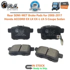 Rear SEMI-MET Brake Pads for 2008-2017 Honda ACCORD EX LX EX-L LX-S Coupe Semi-metallic brake pads have several benefits, including: Durability : Made from a combination of metals like iron, steel, and copper, semi-metallic brake pads are more durable and long-lasting. High performance : They offer excellent braking performance, especially in high temperatures, making them ideal for heavy-duty or high-speed applications. Good heat dissipation : They handle heat well, which helps maintain braking efficiency and prolongs the life of the pads and rotors. Stable friction performance : They have stable friction performance across a variety of temperatures. Strong initial braking power : They have strong initial braking power. Brake pads are a key component of a car's braking system, and choosing the right type of brake pad for your vehicle is important for a safe and smooth driving experience. Rear Semi-Metallic Brake Pads with Hardware Set Kit Includes: 2x Rear Premium Semi-Metallic Brake Pads with hardware - RA-MD1451-1 *Replacement Rear Driver and Passenger Side Brake Pads Fits MAKE MODEL YEAR RANGE SPECIFIC DETAILS HONDA ACCORD 2008 - 2017 All Models Contact us We can be contacted at any time through eBay messages if you have any questions, comments or product requests. We will respond to you within 24 hours and do our best to help you out! We encourage our customers to contact us with any questions or concerns! We'd like to be sure you are completely satisfied with your purchase. Open hours (EST) Monday: 9a.m. - 4p.m. Tuesday: 9a.m. - 4p.m. Wednesday: 9a.m. - 4p.m. Thursday: 9a.m. - 4p.m. Friday: 9a.m. - 4p.m. Saturday: Closed Sunday: Closed Payment We use eBay's Safe and Secure Checkout. We accept PayPal, Visa, MasterCard, Amex (Immediate Payment Required). Sales tax may be applied to your order depending on your location and local regulations. This will be automatically calculated and added during checkout. Shipping All orders placed before 3pm (Eastern Standard) will be shipped the same business day. Orders made after 3pm (Eastern Standard) will be shipped the following business day. All orders in the continental 48 States will be shipped FREE of charge via USPS, FEDEX or USPS at our discretion. Orders outside the continental 48 States (Alaska, Hawaii, Puerto Rico, US territories, or International) will be required to pay a surcharge for shipping. International orders will be shipped via USPS Priority Mail International through eBay Global Shipping Program. Returns Customer must contact RA Auto Parts within 30 days of receiving shipment for approval of any return or exchange. Returns or exchanges will be subject to a 20% restocking fee of the original item purchased plus cost of return shipping and replacement shipping. Exchanges due to shipping errors by RA Auto Parts will not be subject to a restocking fee or shipping charges.