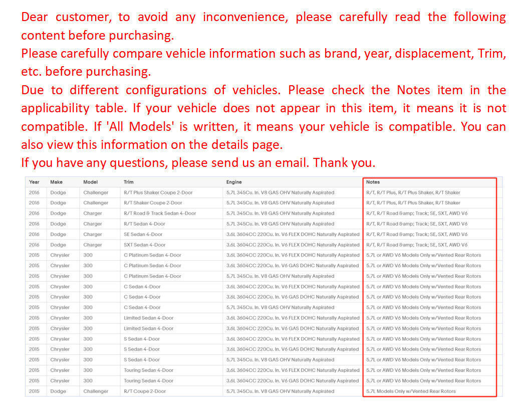 Product Description Rear brake pads + 2 sensors For Lamborghini Urus Safe And Reliable New ~ Lamborghini Urus rear brake pads + 2 sensors OE: 4M0698451AA , 4M0615121D Fits: For Lamborghini Urus 2018-2022 For Bentley Bentayga 2017-2020 Delivery Details ★ Please note that due to the complexity of the order, delivery times for some items may take longer than expected, leave a message to us for the most accurate ETA for your order. 99.9% of orders are shipped within 2 days. ★ It usually takes 2-5 working days to arrive. Deliveries may be delayed due to holidays and weather. Please allow up to 8 days delivery time. For remote areas, it may take longer. ★ Please provide accurate information for your order ①Full physical address ②Valid phone number ★ We shipped the goods according to the address on eBay,please check the address before placing an order. ★ We are not responsible for any wrong or undeliverable addresses. Please verify and update your shipping address on eBay during checkout. Tracking number will be sent to your Order Detail on eBay once the item has shipped. Return Policy ★60 Days Free Return and Money Back ★If you are not satisfied with your purchase, you can return the item with original packaging back to us for full refund, not any re-stock fee. ★If you receive any wrong items, or damage during the transportation or defect items, we will accept the return and pay the return freight. ★If you have made a mistake on purchase and wish to cancel the order before it is dispatched please ★contact us by ebay massages or email as quickly as possible. ★ The returned products must be placed in a complete box, and we do not allow partial package returns. ★The full refund or replacement will be available for all faulty items, including the original shipping cost. ★Please kindly contact us before return, our representatives will send you the detailed return instruction. ★The guarantee will be only for the cost of the item, we will not responsible for installation or other fees like labor expenses, towing expenses, additional repair expenses or other related expenses. Service Guaranteed ★ This item is backed by a 10 Year Warranty. In the event this item should fail due to manufacturing defects during intended use, we will replace the part free of charge (excludes shipping charges) for the original purchaser. ★ Our warranty covers the replacement of the part only and does not cover any associated costs in regards to labor or any other expenses incurred or associated with the purchase of the part. ★ This item is backed by a warranty against defects in materials and workmanship under its intended use. The warranty does not cover normal wear and tear. ★ The parts that we supply are intended for installation by qualified installers. Warranty will be void due to improper installation. Contact Us Business Hours: Monday to Friday:8:30 am to 5:30 pm (Beijing time) 7:30pm to 4:30am the next day (Eastern time) If you have any questions regarding out parts and services, please ask us a question. You may also send us an email through eBay at the top right corner of this page. About Us Welcome to our HENZIKON eBay store, where safety and performance meet! We specialize in offering premium brake discs (rotors) and brake pads tailored to enhance the stopping power and extend the lifespan of your beloved vehicle. 🚗Why Choose Us? Quality Assured: Every brake disc and pad we sell undergoes rigorous quality control to ensure they meet or exceed OEM standards.Affordable Prices: Get top-notch brake parts without breaking the bank. We offer competitive pricing to keep you and your wallet happy.Quick Shipping: Expedited shipping options available to get your brakes back on track in no time. 💪Safety First: we understand that brakes are the first line of defense when it comes to road safety. That's why we only offer products that prioritize your and your passengers' well-being. 💌Customer Satisfaction: Your satisfaction is our top priority. If you have any questions or concerns, our friendly customer service team is always ready to assist you. powered by