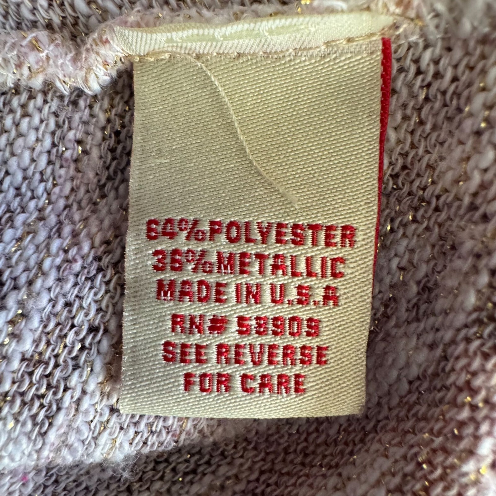 This tunic combines elegant paisley design with shimmering metallic threads for a standout look. The asymmetrical hem and V-neckline add stylish versatility. • Lightweight knit fabric with metallic accents • Asymmetrical hem for added flair • Long sleeves for comfortable wear • Made in the USA • Embellished paisley print No visible flaws. Top to bottom = 31.25 inches Pit to pit = 22 inches Sleeve length = 18 inches
