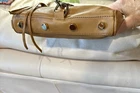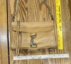 REBECCA MINKOFF Mini MAC Camel Tan Leather Convertible Crossbody Bag Retail $228 Bag measures approx. 9" W x 6.5" H x 2" D Removeable Strap drops 23" Cool outer clasp protects hidden zip pocket securely hides a iphone14 Pro Inside is a slip pocket and plenty of room for wallet, brushes, etc. Cool studded bottom and Strap, pretty hardware, and signature tassels Glove soft leather, that has been cleaned and conditioned ready to go. Please check out all photos, and feel free to ask questions before purchase. Please remember colors vary based on each individual viewing device and computer monitor. No returns for size or color as there are full measurements using rulers to show size, measure a current bag you own. Items will always be mailed within one business day of purchase, and by using the most reliable and cost efficient method. If there is a huge difference in price, you will receive a shipping credit. I want to foster great lines of communication with my buyers. Thanks for looking, and check out my other fab handbags for sale.