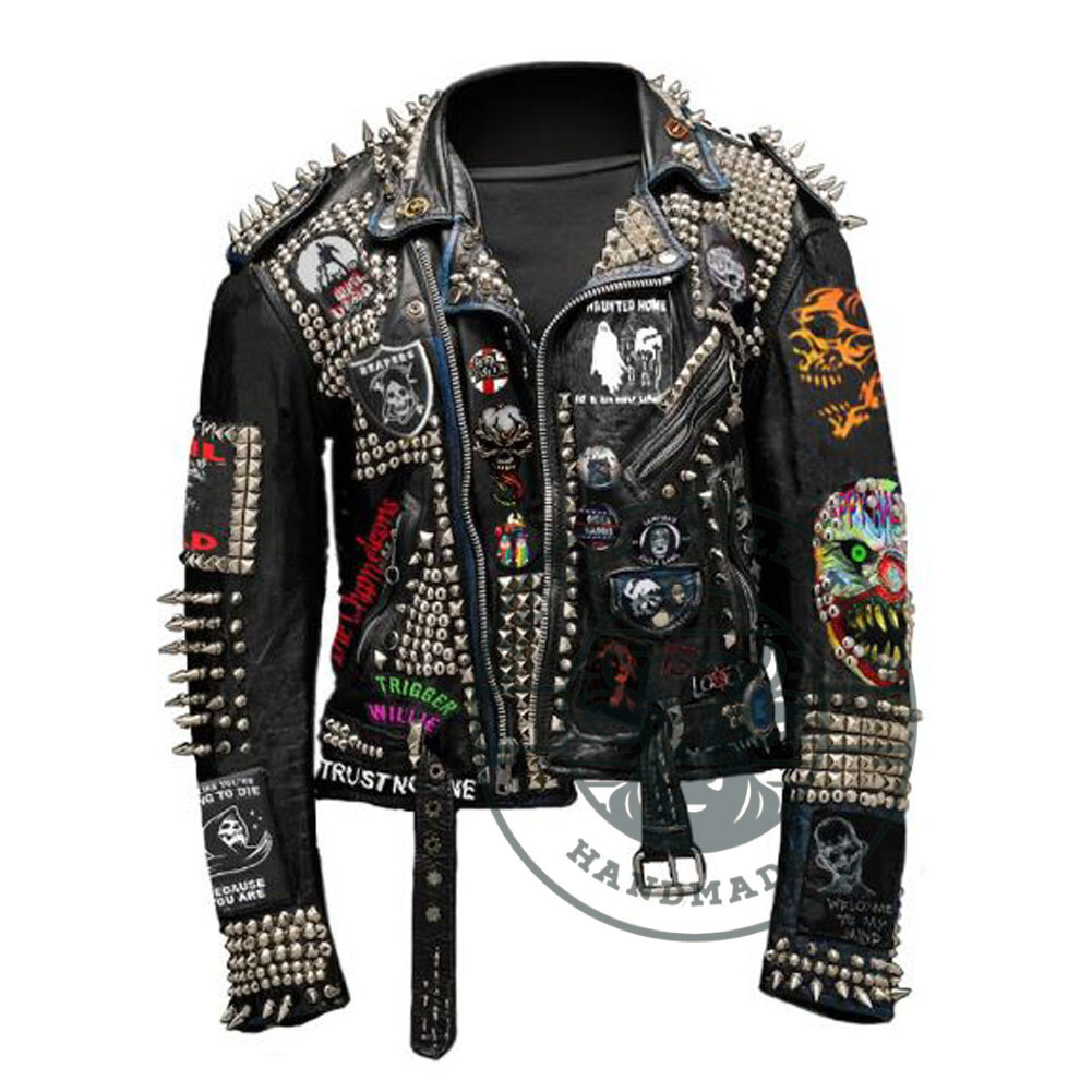 Rebel Punk Handmade Studded Leather Jacket with Rancid Patch, Pins & Buckles