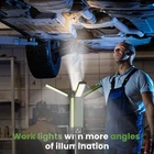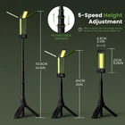 KIND REMINDER: Please Fully Charge Before Using work light with stand TELESCOPIC & DETACHABLE TRIPOD - Telescopic, detachable and magnetic function in 3 in 1, led work light with stand does multi-purpose function, making it a convenient led tool light. Compare to traditional work light 3 head,our work light with tripod is made of high quality material,and easy for us to adjust the height; strong magnetic function to free your hands when repairing lighting. 3 COB LAMP HEAD - Our camping light with stand adopt a large 3-page lamp head design with 2000 lumens to ensure a better lighting range. 45" led work light page can be rotated 100° vertically and 270° horizontally, which makes it more flexible and convenient to use. The head comes with a hook, we can hang it outside wherever there is a hook BATTERY DISPLAY DESIGN - Compared with the traditional led work light with tripod, we upgraded the battery display, which not only monitors the remaining light at any time, but also can charge our mobile phone in emergency. 6000 mAh high capacity battery greatly extends the use of the working time, and camping light with stand can be up to 3.5-5 hours or so when using a strong light WITH A CARRYING BAG - Our work light with stand is a combination of COB and LED flashlight, suitable for outdoor camping, hiking, fishing and other activities, also suitable for long time working projects. Rechargeable camping light package comes with a carrying bag and type c charging cable, we can use it anytime, whether indoor or outdoor.