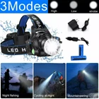 990000LM LED Headlamp Rechargeable Headlight Zoomable Head Torch Lamp Flashlight Product F eatures: ✅100% brand new and high quality. ✅Adjustable head straps,ergonomic design. ✅Independent buttons for 3 modes of light to meet your different requirements. ✅The lamp base is adjustable to meet your needs of different beam angles. ✅Suitable for camping, climbing, hiking, night fishing, caving and other outdoor activities. ✅Press the button lightly to change the modes.There are 3 modes (Bright-Dim-SOS)with this headlight ✅Zoom the head to change the shape of light. Instruction: 1.Take out of the little plastic which is isolation if the battery was installed into the headlamp. 2.Charge the battery first for 3-4 hours. The indicator of charger blinks red and green or just blinks red when the battery is in charge. The indicator of charger turns to green when the battery is in full charge. 3.Install the battery into the headlamp. Put the negative pole (anode)in the side without spring, that means put the positive pole (cathode) touching the spring. 4.Cover the lid back. Hardly press the button beside the head to turn it on. 5.Press the button lightly to change the modes.There are 3 modes (Bright-Dim-SOS)with this headlight 6.Zoom the head to change the shape of light. Specifications Model of Led: Led Body Material: Alumiun alloy Focus: Stretching to adjust its focus Distance: 100 meters Modes: 3 modes ,Bright / Dim / SOS Power supply: 2 x Battery(Included) Net Weight: 290g/10.23oz Waterproofing design, but don't deep it into water. Package Includes 1 x LED Headlamp 2 x Battery (Gold is build-in Li-on battery, Blue is the external lithium battery) 1 x Wall Charger 1 x Car Charger