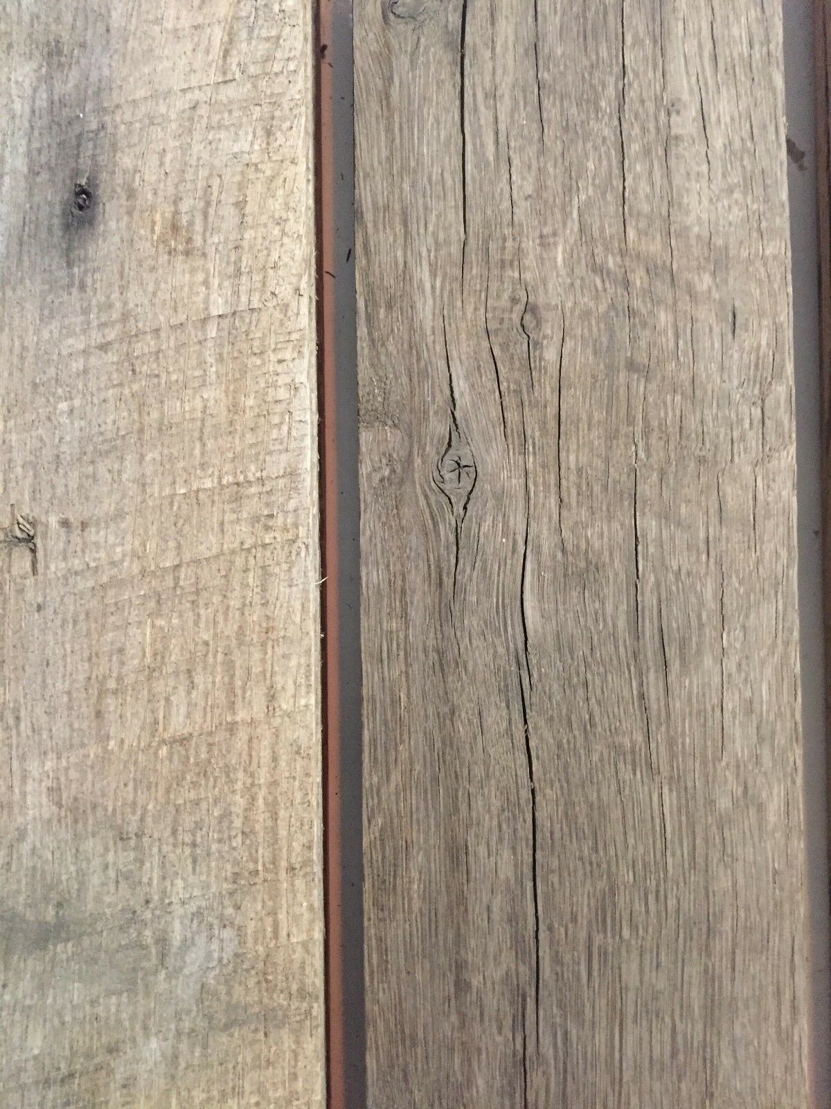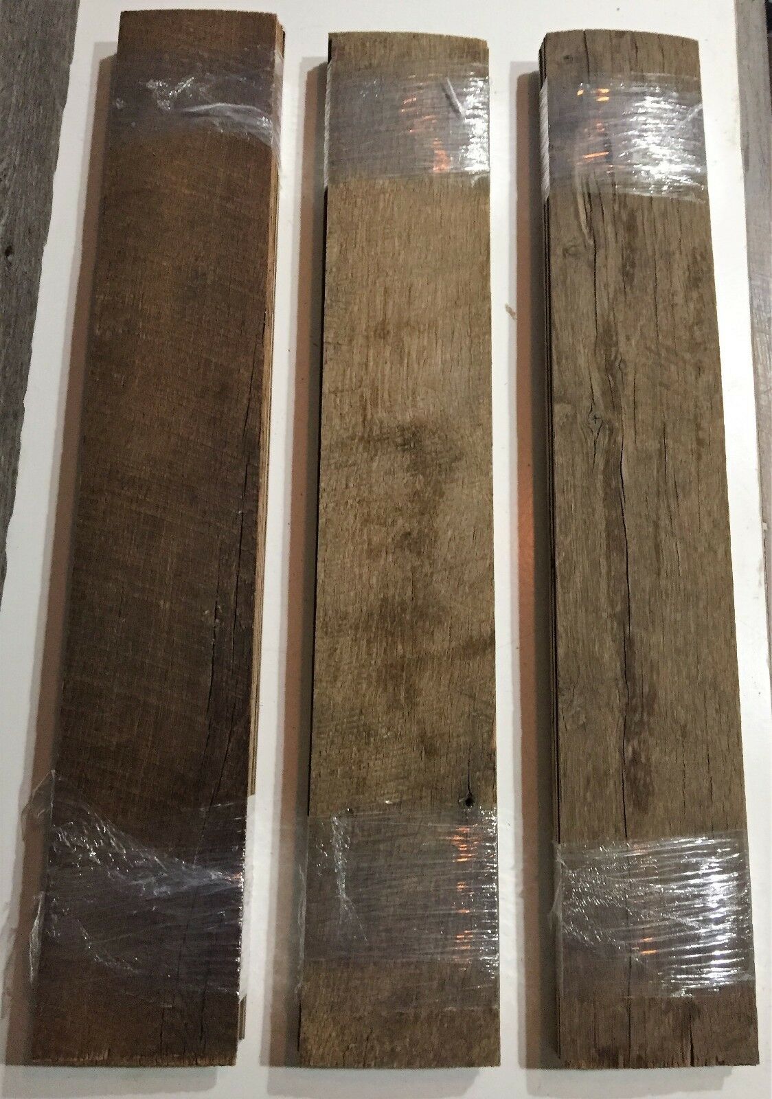 Beautifully reclaimed 100% American Oak kiln dried boards. Great for accent walls and special projects. Add a light coat of polyurethane to these raw unfinished boards and they are ready to install. All you need is a level, brad nailer, tape measure, and a pencil. Each box contains a mix of greys and browns. 30 boards per box (20 squ feet). Boards are 3/16in x 4in x 24in. Board thickness may vary. As a courtesy to you, we add 2-3 extra boards per box, free of charge, to ensure that you have enough square footage to complete your project. To determine how many square feet you will need for your project, just measure the length and height of your room or space and then multiply: Example: 12 feet long by 10 feet high = 120 square feet. Remember to always add 10% for waste. Please contact us if your project requires special sizes or specs. We may be able to accommodate you. Listed prices are subject to change for custom orders. Wooden your way...where beautiful wood inspires you to accent your home or office in unique ways.