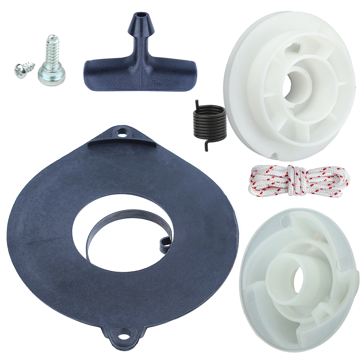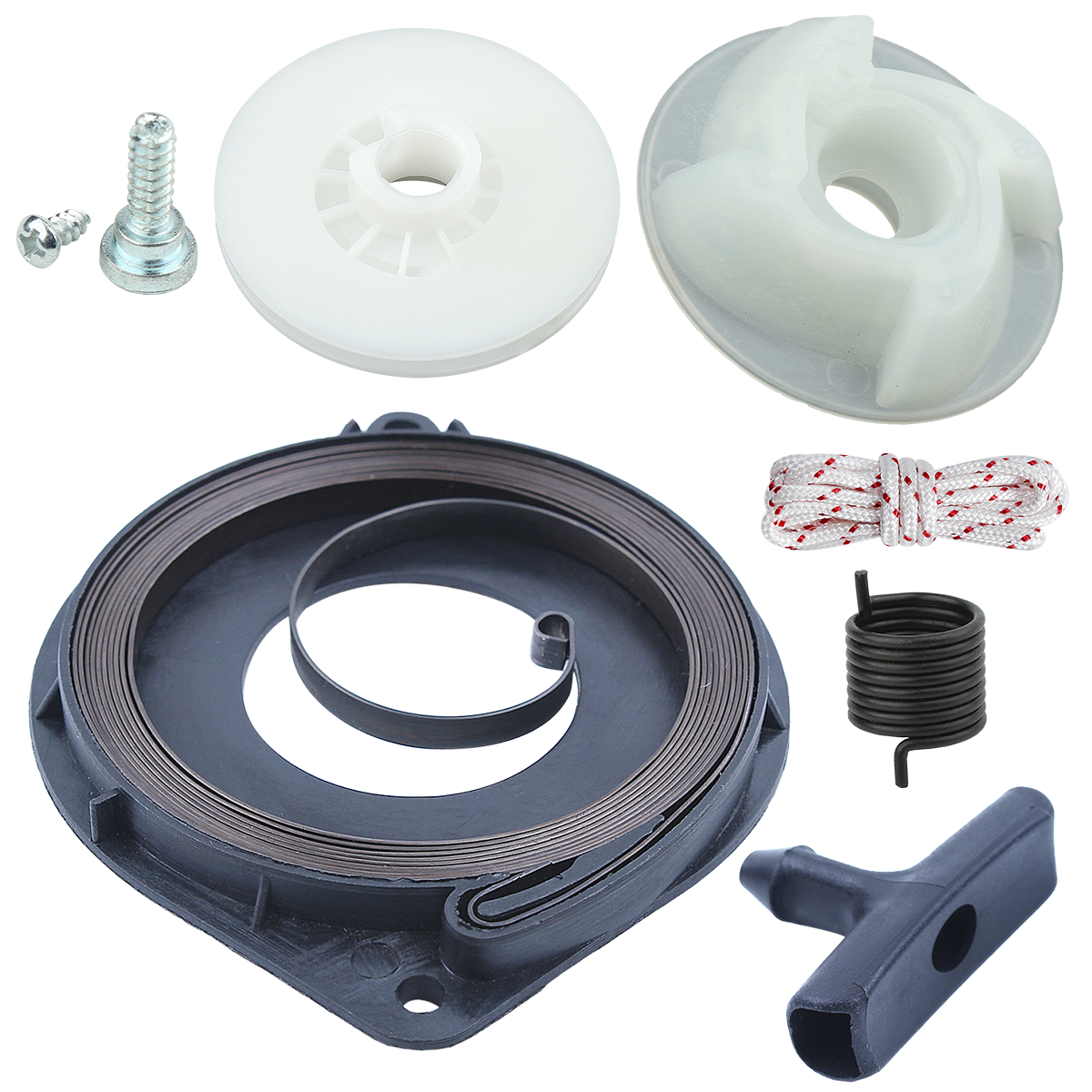 Fit Husqvarna 435 440 chainsaw part Fit Jonsered CS2245S, CS2245S II, CS2250S, CS2141S, CS2145S, CS2240S Chainsaw Replace OEM For 505647301, 537423201, 540057502 Package Include: 1 x Recoil Starter Spring, 1 x Starter Pulley Big, 1 x Starter Pulley Small, 1 x Starter Rope, 1 x EPS Spring Fast Shipping Warranty TIPS About Us Fast Shipping Most of our items leave the warehouse within 1 business day! (Orders placed Friday night will ship out the following Monday.) We'll send out within 24 hours (except weekend) !!! If you want to use a faster shipping method, like EMS, DHL etc, please contact us about the increased shipping cost. Warranty We promise that if you have any problem we will do our best to solve it. Because we pride ourself with the Customer Service we Provide! TIPS Because we only use USPS/UPS/USDHL to make sure your parcel quicker and safer, some single products price is higher than others, we hope you can understand. We advise you to contact us for a discount if you buy multiple items from us. About Us Happy purchase and communication are our goal. Welcome to save my store for buy replacement parts. Thanks for your looking and understanding.