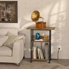 3 Tier End Table, Record Player Stand with Storage Up to 100 Albums, Farmhouse Rustic End Table Turntable Stand for Vinyl, Brown Records Shelf for Living Room Bedroom THREE-TIER RECORD RACK - This record player stand with vinyl storage features three tiers, including a spacious tabletop for record players of all sizes. Additionally, the 2nd and 3rd tier open storage shelves can hold up to 100 records, making it a categorized storage solution that combines artistry and practicality. The classic rectangular frame and lightweight design of the Tall Record Display makes it easy to move and carry. SIDE TABLE WITH OUTLETS AND USB PORTS - The charging station includes 2 three-prong AC outlets and 1 USB port + 1 Type-c, which not only provide direct power to your record player but also give you the freedom to charge your cell , lamp, and laptop. The 59" power cord provides great convenience for everyday use. PRACTICAL DESIGN - Measuring 11.81" (D) x 15.75" (W) x 31.70" (H), this turntable stand can be used not only as a record player stand, but also as a side or end table in small spaces. Iron mesh and small wooden boards to keep records and items from falling off the second and third open shelves of the record rack. Adjustable feet to help keep the record player cabinet level on uneven floors. FARMHOUSE STYLE END TABLE - The Mid-Century Record Player End Table combines a rustic brown wood grain with matte black metal brackets to retain the vintage feel of the wood grain without losing the modern industrial style. The turntable stand is made of sturdy and durable wood panels and a corrosion and rust resistant metal frame to ensure long term use. THICK PACKAGING AND EASY ASSEMBLY - We pack these industrial record player racks in thickened Styrofoam and tough cardboard boxes to ensure they arrive in perfect condition. These vinyl record player racks come with detailed instructions, labeled parts, and an assembly tool to help you assemble the record organizer rack more easily. Also, you can check out our installation video.
