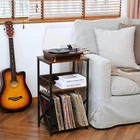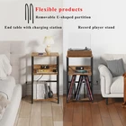 【RECORD TABLE WITH CHARGING STATION】This record player stand with storage has 2 AC outlets, a USB port and Type-C port, allowing you to charge your phone, lamp, or game console simultaneously 【3 TIERS RECORD STAND】This record player table features a tabletop for your record player and the 2nd and 3rd open storage shelves that can hold up to 100 albums, offering ample storage and display options 【VERSATILE USE】This vinyl table doubles as a side table, suitable for a variety of rooms such as living room, study, bedroom or office 【STURDY AND STABLE】The vinyl record player stand made of robust particleboard and steel, the X-shaped iron supports on both sides enhance stability, preventing any wobbling even when heavy items are placed on the table 【EASY TO ASSEMBLE】This record player holder comes with detailed instructions and labeled parts, along with installation tools for a smooth setup. If you have any questions, please contact us freely