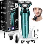 About this item 【3D Floating electric razors Heads】Electric shavers for men with precision blade technology, high speed motor, high efficiency floating shaving head fits the contours of your face, neck and even chin for a comfortable and flattering shave.3 double ring floating mens electric shaver head made of aircraft grade stainless steel material, combined with high speed motor, dual track ultra-thin spherical blade mesh and self-sharpening head for a cleaner shave. 【IPX7 WATERPROOF, DRY & WET SHAVING】The electric razor for men has IPX7 waterproof, can be used for dry shaving and wet shaving, choose as you like, easy to clean. When you are in a hurry, you can just use the dry shaving function to speed up your efficiency. When you're in the shower, use the shaving foam or gel for wet shaving to give you a comfortable and smooth shaving experience. In addition, both the head and the body support direct rinsing with water, which is more convenient and cleaner (please wash men's electric razor after turning off the power) 【Multi-functional All-in-One Grooming Kit】This kit is not merely an electric shaver for men's faces or a electric shavers for men face. It is also equipped with a nose hair trimmer and sideburn trimmer. Moreover, it comes with 3 different-sized guide combs (3mm, 5mm, 7mm), which can be replaced simply by pulling off the cutter head. Electric razors for men face meets all your multi-functional sideburn and facial grooming needs. These 3 guide combs in different sizes can satisfy your diverse requirements for hair detailing, men razors for shaving electric truly achieving a full range of fine care from head to face. 【120mins Long lasting】120 minutes of charging time will give you up to 120 minutes of strong power. Whether you are a businessman who travels frequently or a busy person, electric razor for men can meet your needs for long time use. With one charge, electric razors for men can accompany you through many shaving times without the need for frequent recharging, so that your life is always efficient and relaxed. 【USB Convenient Charging】This mens electric razors for shaving face brings you the ultimate in convenience and clarity, with a USB charging port that makes it easy to find a place to charge at home, in the office, or on the go. When you start charging, the 'CHARGE' display will show up to tell you that razors is replenishing its energy; when shaver is fully charged, the 'FULL' display will light up, making it easy and convenient to know the charging status at a glance! 【Upgrade fashionable ergonomics】Men's electric razors for shaving face excels in function and is even more innovative and fashionable in appearance design. The overall simplicity of the body shows your taste and personality. The shaver men ergonomic handle is designed to fit the curve of your hand, allowing you to feel unprecedented comfort and ease when holding razors electric. Includes: 1 x electric shaver; 1 x replacement head for barber; 1 x replacement head for nose hair trimmer; 3 x size guide combs; 1 x USB charger; 1 x cleaning brush; 1 x dust bag 【A SMOOTH AND CLOSE SHAVE 】: With 4-direction floating heads, the 3D rotary shaver automatically adapts to the contours of the face, neck and even the jaw, and provides a comfortable and close shave anytime.