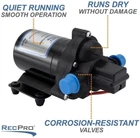 Store New Arrivals Add to Favorite View Feedback Contact Recpro RV Water Pump Direct Replacement for Shurflo 4008-101-A65 3.0 GPM | 12V Water Pump | Self-Prime | Camper Water Pump | RV Plumbing Description Item model number 10 Part Number 4008-101-A65 Batteries Required? No Maximum Lifting Height 9 Feet Power Source Battery Powered Item Package Quantity 10 Color Silver Product Dimensions 4.9"L x 4.3"W x 8.1"H Material Polypropylene Item Weight 4.54 g Maximum Flow Rate 3 Gallons Per Minute Batteries Included? No Voltage 12 Volts (DC) Manufacturer RecPro Size 1 Pump Created with a unique one-piece diaphragm and internal by-pass, this pump is durable and reliable for all plumbing systems. Designed as the next legendary pump to exceed the expectations of our customers, the Revolution Pump is constructed for high flow demand, low noise, and no rapid cycling. The 4008 Revolution fresh water automatic demand pump is super quiet, thermally protected, and can run dry without damage. With this quality assurance, you can relax in your RV without needing to worry about your water pump. With the built-in check valve, backflow is prevented so that you can make sure you’re getting all of the water you want to the fixture you’re using. While the pump runs at about 55 PSI, the pressure at which the pump will shut off is 45 PSI. Please Note: E65 and A65 is the Same Pump. Pump Listed Does NOT Come in Retail Package Product Description Technical Data: Voltage: 12V DC GPM/LPM: 3.0/11.6 PSI/BAR: 45/3.1 Amps: 4.0 Max draw: 8.0 Amp Max Lift: 45 PSI/3.18 Bar RecPro 12V Electric 3 Chamber RV Water Pump The RecPro 12V Electric 3 Chamber RV Water Pump is the perfect solution for all of your RV water needs! This pump features corrosion-resistant valves, which keep it running smoothly and quietly, perfect for camping in a packed campground. With its self-priming feature, you can rest assured that the pump will keep up and running without requiring extra steps or care from you. Pick up this 12V RV Water Pump for a reliable and quiet water pump perfect for any camping trip! Dimensions: 8"L x 5 1/4"W x 4 3/4"H Corrosion-resistant valves Quiet running Smooth operation Self-priming up to 9.0ft vertical Runs dry without damage Lower power draw Easy connecting system ABOUT US We offer the best prices around on high quality products. Our E-store includes media such as books, movies, music and games while offering electronics, toys, sporting apparel, clothing, tools, general home, garden items and more. SHIPPING We are always working hard to ensure your package arrives as soon as possible. Please understand that some factors like weather, high postal traffic, and the performance of shipping companies are outside of our control. For shipping outside of the continental USA, we only use eBay's Global Shipping Program.The item is shipped to KY and then sent to the rest of the world. International customers are responsible for all duties and taxes. Continue to check out in order to calculate costs for shipping the item to your country. Messages regarding eBay's Global Shipping Program MUST be directed at eBay EXCLUSIVELY. RETURNS We offer a 30-Day Return Policy on items which you are not completely satisfied with. You have the option for a full-refund or an exchange of the item. No returns are available on items shipped outside of the USA. PAYMENT We accept PayPal. CONTACT US This page content is yet to come Please ad us to your favorite seller and visit again later Thank You CUSTOMER SATISFACTION We try our very best to make sure every customer is completely satisfied. If there's a problem, message us! We're happy to help. WE ACCEPT Copyright © 2021 AutoDS. | All Rights Reserved