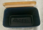 This beautiful ceramic dish is perfect for storing your favorite butter or other spreaders. The rectangular shape and bamboo lid add a touch of elegance to any kitchen. Measuring 3 inches in height, 6 inches in length, and 3.5 inches in width, this dish is the perfect size for any table setting. The blue color adds a pop of color to your kitchen and the set includes one lid. This dish is a must-have for any kitchen storage and organization enthusiast.