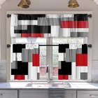 Red Blackout Kitchen Curtain Set with Grey Valances 3 Piece Window Treatment