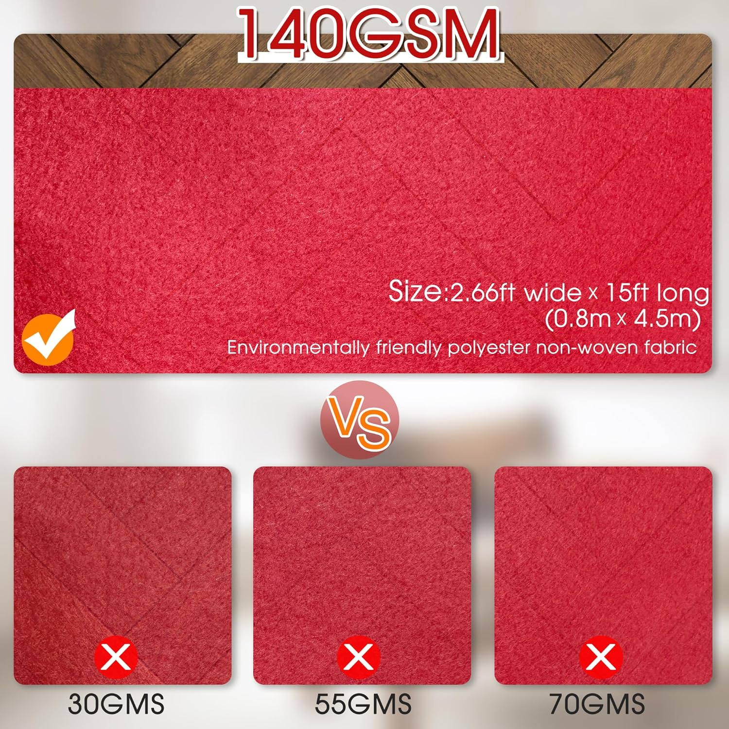 Store New Arrivals Add to Favorite View Feedback Contact Fast deliveries to the customer's home Quality customer service John Make the customers happy! Red Carpet Runner for Party,140Gsm 2.6Ftx15Ft Carpet Party Decorations Runway Rug for Prom Felt Non-Woven Fabric, Runner Rug for Wedding Ceremony Hollywood Theme Party Description 【Eco-Friendly Material】: Made from 140GSM polyester, soft, durable, tear-resistant, and comfortable for safe use. 【Ideal Size】: Measures 2.6 ft wide x 15 ft long, allowing two adults to walk side by side, perfectly accentuating event spaces. 【High Value】: Bright, 140gsm felt with a needled non-woven process for balanced thickness and vibrant color. 【Customizable】: Easy to cut without fraying; can be stacked for double thickness or joined with Velcro/tape for extended length. 【Versatile Use】: Suitable for indoor/outdoor events like proms, weddings, parties, and graduations; recommended for one-time use. 140gsm weight is industry-leading The texture is absolutely leading 2.6FT width is enough for 2 adults to walk side by side There are two lengths to choose from One is 15FT and the other is 30FT Please feel free to purchase. Item model number Red Carpet--A0035 Style Modern Weave Type Carpet Pattern Solid Is Stain Resistant No Theme Christmas Number of Pieces 1 Room Type Hallway Material Carpet Model Name Red Carpet--001 Rug Form Type Runner Indoor/Outdoor Usage Both Item Weight 0.58 Kilograms Pile Height Medium Pile Construction Type Carpet Material Feature Heavy-duty and superior texture Special Feature Industry-Leading Weight & Texture Color Bright Red Shape Rectangular Back Material Type Carpet Recommended Uses For Product Proms, Weddings, Parties, Graduations, Indoor/Outdoor Events Product Dimensions 180"L x 32"W Size 2'8" x 15' (Rectangular) ABOUT US We offer the best prices around on high quality products. Our E-store includes media such as books, movies, music and games while offering electronics, toys, sporting apparel, clothing, tools, general home, garden items and more. SHIPPING We are always working hard to ensure your package arrives as soon as possible. Please understand that some factors like weather, high postal traffic, and the performance of shipping companies are outside of our control. We offer free shipping to the lower 48 states and ship within 2 business days of payment, usually sooner. We do not accept P.O. Boxes. Please provide a physical address. For shipping outside of the continental USA, we only use eBay's Global Shipping Program. The item is shipped to KY and then sent to the rest of the world. International customers are responsible for all duties and taxes. Continue to 'check out' to calculate costs for shipping the item to your country. Messages regarding eBay's Global Shipping Program MUST be directed at eBay EXCLUSIVELY. RETURNS We offer a 30-Day Return Policy on items in which you are not completely satisfied with. You have the option of a full-refund or an exchange of the item. No returns are available on items shipped outside of the USA PAYMENT We accept PayPal. CONTACT US This page content is yet to come Please ad us to your favorite seller and visit again later Thank You CUSTOMER SATISFACTION We try our very best to make sure every customer is completely satisfied. If there's a problem, message us! We're happy to help. WE ACCEPT