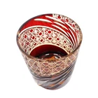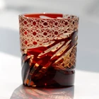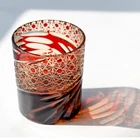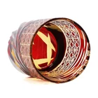 Red Crystal Glass Whisky Glass Tumbler Edo Kiriko Drinkware Hand Cut Clear 9oz