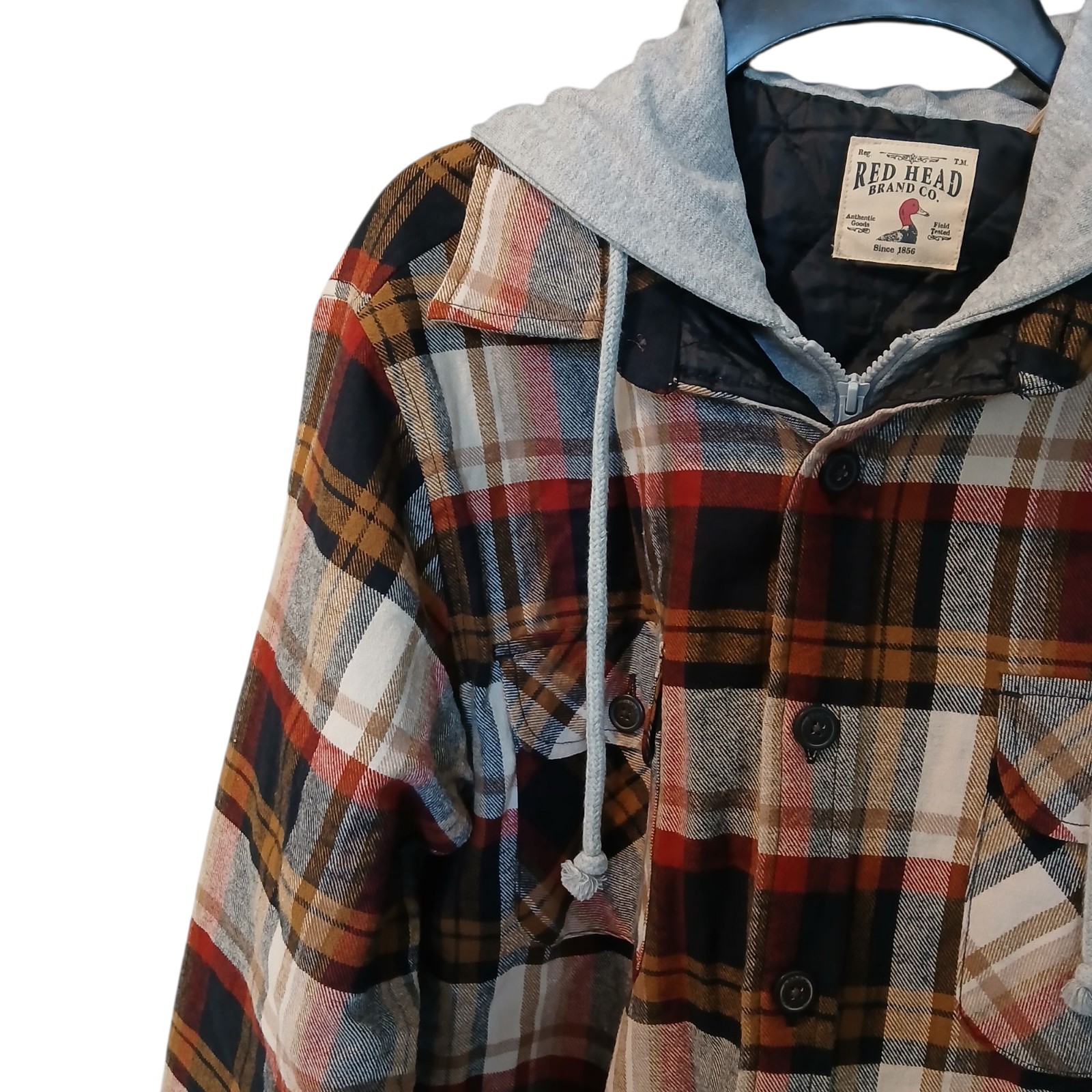 NEW Red Head Button Up Lined Flannel Hoodie Jacket Red Mulicolor Plaid Men’s Size Large No Defects! Looks Great! *Laying Flat Pit to Pit 24" *Laying Flat Shoulder to Hem 30" *Items Shipped With 1 Business Day Or Less! All Reasonable Offers Accepted. 100%Satisfaction Guaranteed *Smoke Free Home