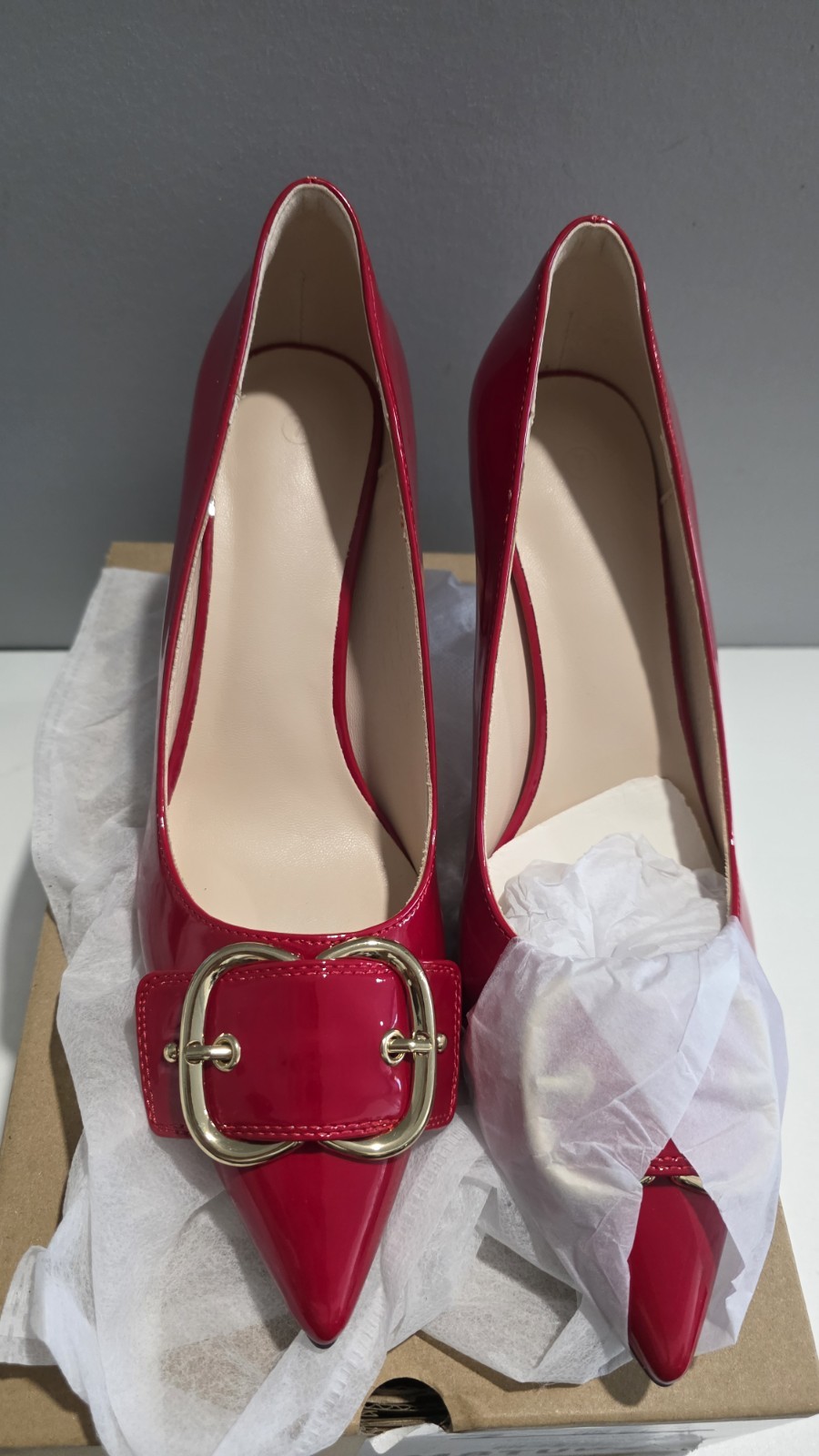 These Red Heels Closed Toe Shoes in size 7 are perfect for a party or cocktail event. The high stiletto heel and pump style give them a stylish and sophisticated look, while the synthetic upper material ensures durability. The solid red color and season suitability for summer, fall, and spring make them a versatile choice for various occasions. Made in China, these shoes exude elegance and class, making them a must-have for any woman's wardrobe.