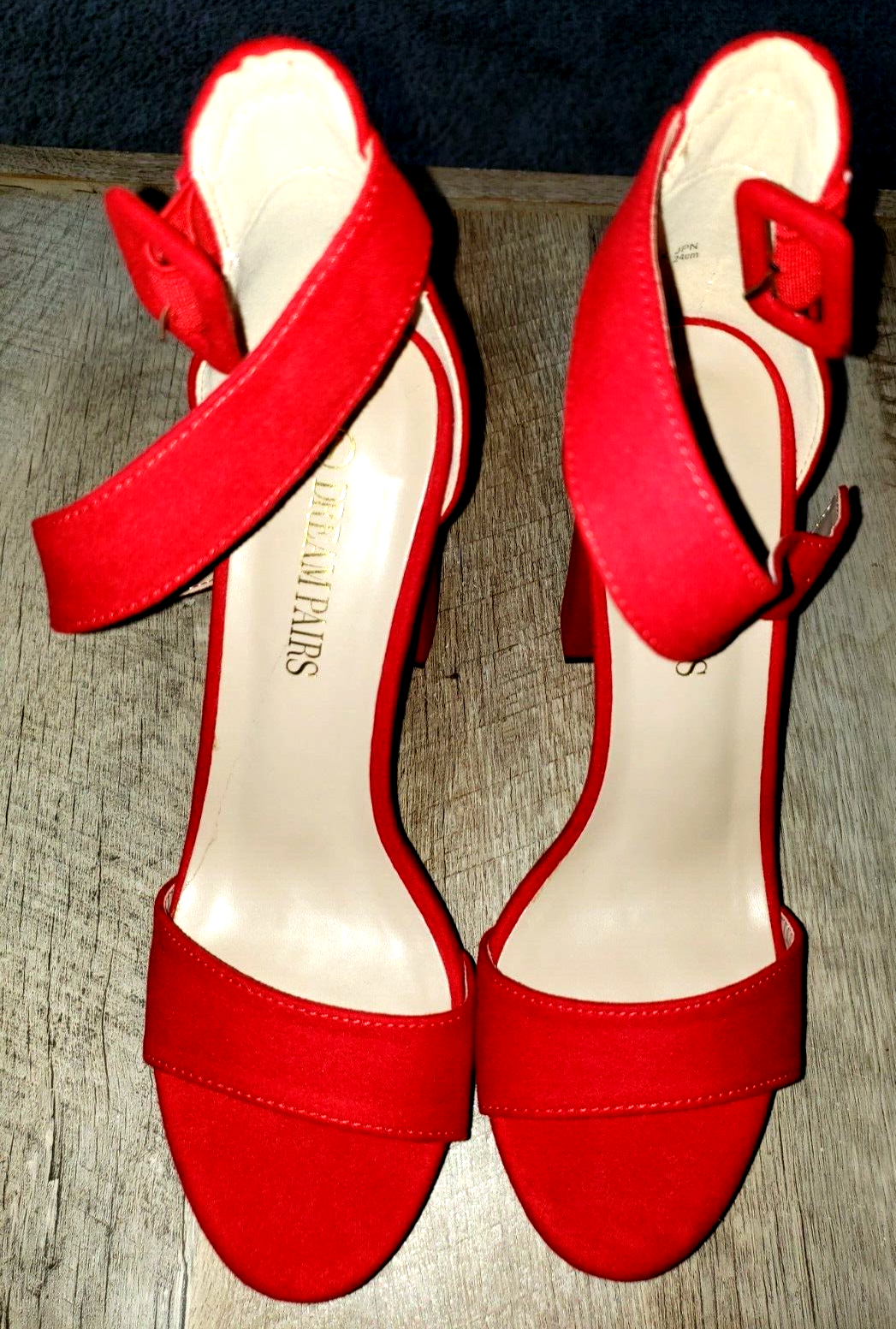 Elevate your footwear game with these chic DREAMPAIRS strappy high heels, perfect for any going out wear. The vibrant red hue makes a bold statement, while the block heel design provides both stability and height. The heels measure 6.5 inches tall. They're an ideal choice for those special occasions or for adding a dash of glamour to your everyday ensemble. Step out in confidence and make a statement with these eye-catching heels. no damages! WE DO NOT BREAK UP LOTS! WE DO NOT ACCEPT OFFERS!! WE RUN SALES DAILY! KEEP CHECKING! All of our items are from a smoke free, pet free home. we do our best to describe them as we see them. if for any reason you are not pleased with an item, please let us know. we do NOT refund s/h fees for any reason, as we cannot get it back from the post office. We ship monday thru friday, within 24 hours of rec'g payment. if you do not get your package in a day or two, PLEASE give it 7-10 days to get to your door. the USPS has been slowing down, and it is out of our control how long it takes to get to you. we DO ship EVERY day, as stated above. We do combine shipping for up to and including 10 items, OR 10 days from your first win. example: you win an item on the first, we expect payment no later than the 10th--even if you win auctions on the 3, 4 or 5th. keep this in mind when bidding. we will combine up to 10 auctions. please do NOT send us a list asking how much shipping will be IF you win 10 auctions. we will NOT know the weight until all items are won, and weighed at that time. Need it fast? we ship every weekday! 2-24 green
