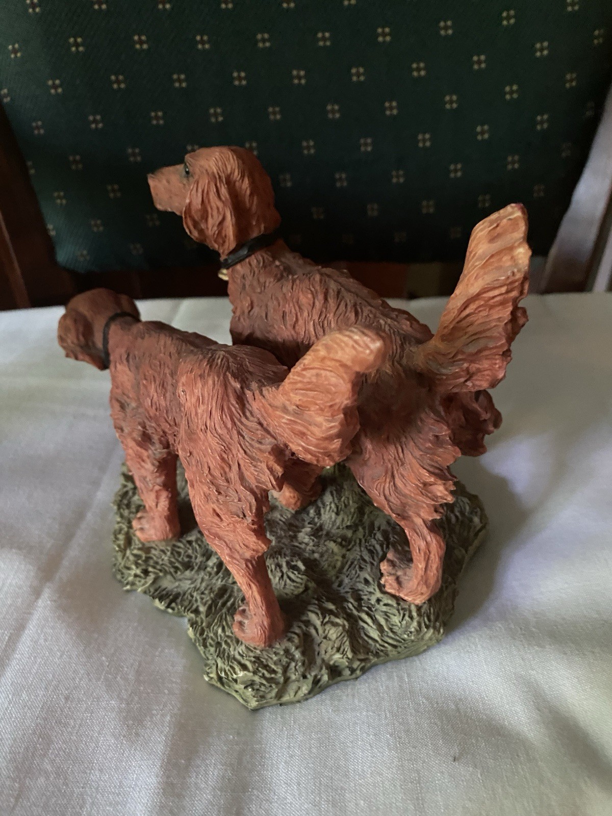 Polystone, Resin, Red Hunting Dog, Irish Setters Pair Decorative Figure Base is 6" x 5"