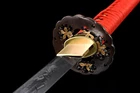 Product Parameter: NUMBER: SHIJIAN190305 MATERIAL: Clay tempered T10 high carbon steel OVERALL: 103cm/40.6 inch BLADE: 70cm/27.6 inch TSUKA 26cm/10.24 inch WIDTH: 3.2cm/1.26 inch THICKNESS: 0.7cm/0.28 HRC(hardness): 60 SHAPE: Shinogidukuri NAKAGO: Fulltang KISSAKI: medium (chūkissaki) BO-HI: double groove HAMON: Real hamon SHARPNESS: ★★★★★ MIRROR EFFECT: ★★★★★ TSUKA(HANDLE): Hard wood core, hineri maki MEKUGI: 2 bamboo pegs SAMEGAWA: Genuine shark rayskin FITTINGS: Top grade brass,plated with real gold&silver SAYA: Lacquered wood scabbard+black real ox horn CRAFT: fully handforged,clay tempered,water quenched,hand-polished,engraved with a samurai(武士) design on the blade,etc. Tsuba & Fuchi & Kashira & Habaki Saya Additional Service About us Delivery details Tsuba & Fuchi & Kashira & Habaki Alloy Tsuba Iron Tsuba ( extra $10) Brass Set ( extral $50 ) Alloy Fuchi & Kashira Habaki TSUKA-ITO & SAGEO Tsuka-ito is the wrapping of the tsuka and sageo (下緒 or 下げ緒) is a hanging cord that is passed through the hole in the kurigata (栗形) of a Japanese sword's saya. SAMEGAWA Samegawa(鮫皮)is the ray or shark skin wrapping of the tsuka (handle/hilt). Saya Please contact us before placing an order to see if there is any stock available, as well as any additional charges. OX Horn Saya Additional Service It's free for engraving English words, Chinese Characters and Japanese Kanji , etc. You need pay extral $20-30 for engraving patterns. Hamon We can add or remove the machine-made wavy hamon for free. Bo-hi ( Blood Groove) Usually thought be used for bloodletting only. It is also used to lighten the weight of the sword. We can add or remove Bo-hi for free Sharpness Most of our blades are sharp. We can also make the blade unsharpened for free if you require. Colored Blade If you want to change to a different color blade, please contact us before purchase. Matching Swords Set If you buy one katana, we can make a matching Wakizashi or Tanto for you. The price varies from different swords. Please contact us if you need make custom matching set. About us We have our own sword-casting factory. The factory is located in Longquan, a small town with a long history of sword-casting in China. Most of the famous Swords in China are made there. Rich raw materials, skilled technology, traditional sword casting technology from generation to generation. Manual production really takes a lot of time. We will prepare most products in advance ,and arrange delivery within about a week. However, sometimes the delivery time is delayed due to weather or raw materials,etc. we hope to get your understanding. Feel free to contact us to inquire about the status of your order. Each handmade sword is unique. Our swords are great for gifts or for your own collection. Our swordsmithing master makes every sword attentively, hope you can feel our sincerity. We will also give you the best customer service, any questions please feel free to contact us. Delivery details a) Import duties, taxes and charges are not included in the item price or shipping charges . These charges are the buyer’s responsibility. b) If you do not receive the package, or the package is damaged during transportation. We'll take care of it. Please feel free to buy. c) If it is mentioned in the product description that the package includes the sword bag or sword holder , the style will be random. The sword holder or sword bag on the ebay picture is the props we use for shooting. If you really like a style, please contact us before buying. d) If you have any problem after recieve the package (wrong size, wrong style, etc.). We always provide you with the best after-sales service. Please give us a chance to help you before you give us a bad feedback . Thank you very much!