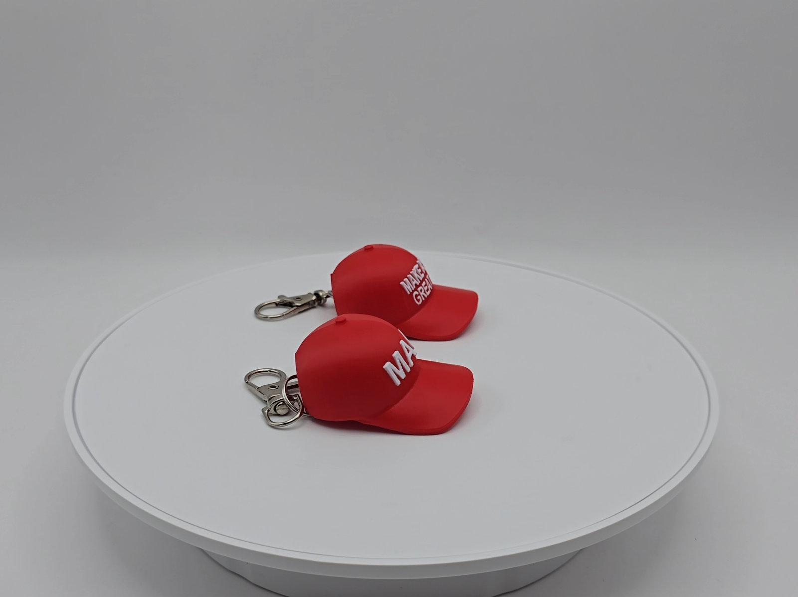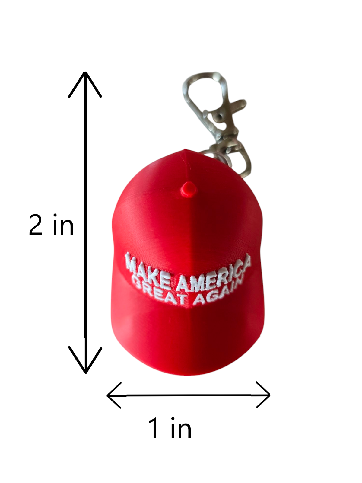 Show your patriotic flair with this striking red MAGA hat keychain. A perfect blend of style and functionality, this novelty 3D printed accessory is designed to add a touch of radical right-wing activism to your everyday life. Crafted with lightweight plastic, it's a comfortable and durable addition to your collection. The solid pattern and classic baseball cap style make it an ideal keepsake for any conservative enthusiast. This medium-sized keychain, featuring a bold and iconic design, is sure to be a conversation starter whether you're attaching it to your keys or wearing it as a statement piece.