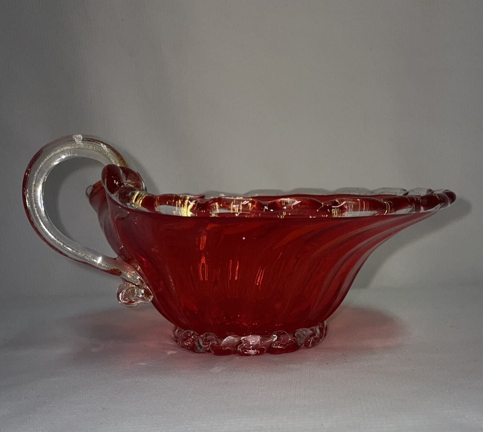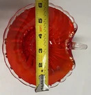 Red Glass Scalloped Edge W/ Handle Candy Dish Pontil Mark 3 1.2 In ches High Pre-owned, no chips or cracks. The scalloped edge as well as the handle are black light reactive, Unit measures 3 1/2 inches at highest area x 6 inches at widest point x 6 12 inches deep. base measures2 3/8 inches from edge to opposite edge. ATTENTION REGARDING SHIPPING !! Shipping costs are expensive. Here is an offer that is hard to refuse. If you buy 2 or more items totaling $50 or more , I will handle the shipping cost (ground) anywhere in the continental United States. The items cannot be listed as having to be shipped alone due to SPECIAL PACKING NEEDS . eBay does not adjust the shipping cost removal from the invoice automatically. I can do it on the final invoice after you have the items in your shopping basket, before you pay. If eBay forces payment before that is done, you will receive a refund of shipping cost made before your package is shipped within the first business day following the transaction. The free shipping offer does not apply to Priority or Expedited shipping, although we can discuss a fair reduction in shipping cost should you desire the shipping upgrade.