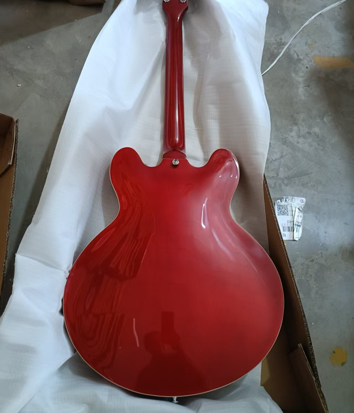 Semi Hollow Red 335 Electric Guitar with Scalloped Square Inlays
