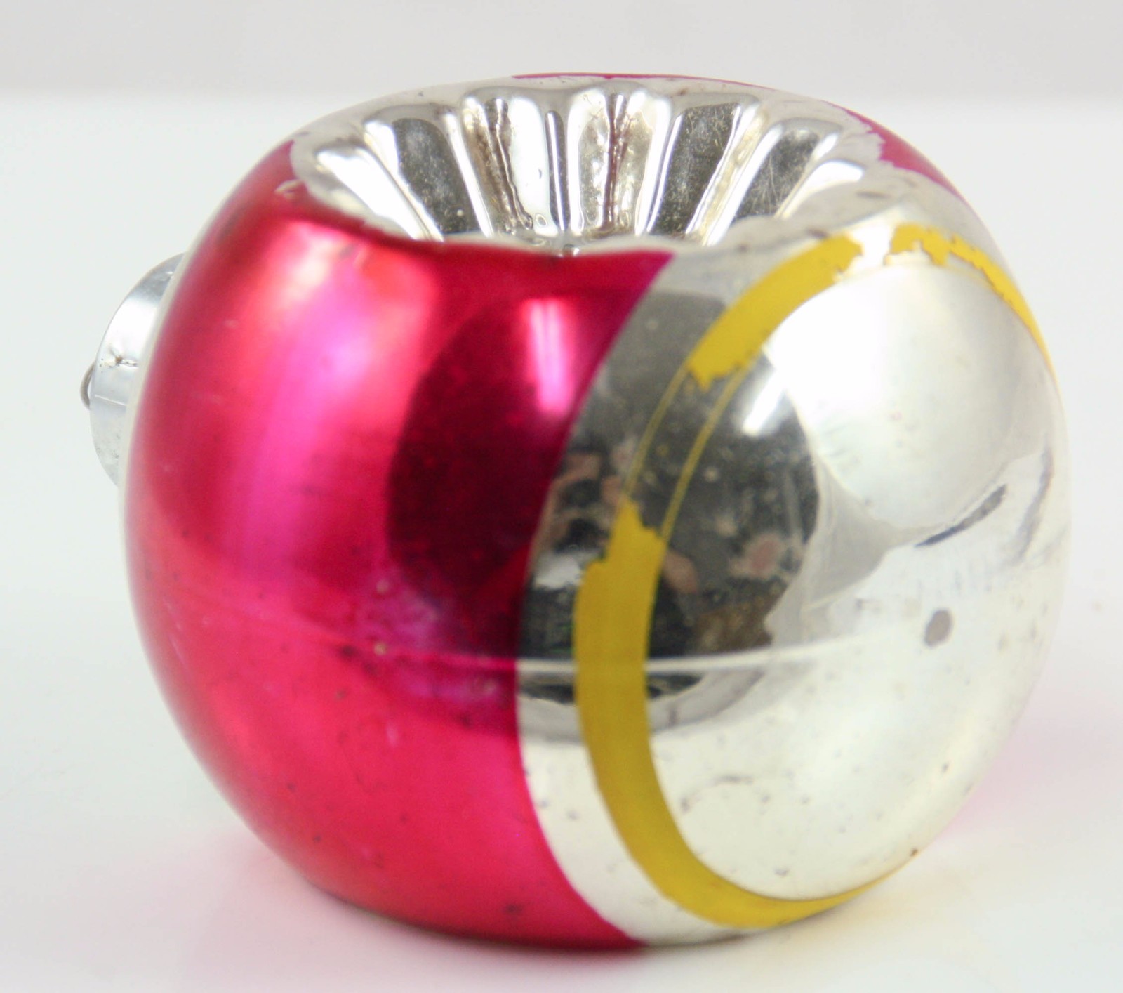 Christmas Ornament Glass Red Silver Yellow Indent Ball Measures approximately 2" x 2" Please see pictures for details and condition. Condition is subjective and items are sold as is but I would be happy to answer questions or provide more pictures if needed. Also please let me know if you are not satisfied with your purchase for any reason before opening a case. I will work hard to make sure you are satisfied and you can always start a case if you are not happy with my response. I have a pretty relaxed return policy so if you don't like something I am happy to take it back. As always, if you have information that could help me improve my listing please share the knowledge and let me know. Thank you Check out my other items !
