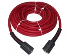 Red UBERFLEX Kink Resistant Pressure Washer Hose 1/4" x 50' 3,700 PSI with (2) 22MM ProPulse Red UBERFLEX Kink Resistant 1/4" x 50' 3,700 PSI Pressure Washer Hose with 22MM-14 Twist Connects. The most flexible hose in the industry! The latest technology from ProPulse delivers a revolutionary upgrade from the standard consumer grade and light commercial duty cold water pressure washer hose. UBERFLEX™ possesses the unique properties of superior resistance to permanent kinking and abrasion Designed for use on gas or electric pressure washers with operating pressures of 3,700 PSI or less. Works on many Briggs & Stratton, Craftsman, Delta, Devilbiss, Excell, Generac, Karcher, Ryobi, Sears & Troy Bilt units with dual 22mm-14 female twist connects. NOT FOR HOT WATER OR STEAM Note: Will not work with 22mm-15 twist connects on some electric and gas pressure washers Features: • MADE IN THE USA: Every foot of ProPulse UBERFLEX is designed, engineered and manufactured in the USA, assembled using imported and/or domestic end fittings • PERMANENT KINK RESISTANCE: Let’s face it—all hoses can be kinked under the right conditions, but the unique UberFlex technology ensures that if the hose is pinched or kinked, it won’t stay that way permanently • FLEXIBILITY: UberFlex feels more like an extension cord than a hose, and possesses the smallest bend radius in its class • TEXTURED COVER: The textured cover upgrade reduces tack and snag tendencies during handling, dragging and reeling • UNMATCHED ABRASION, OZONE, UV AND CHEMICAL RESISTANCE: The proprietary high performance of the UberFlex cover is at least five times more abrasion resistant than traditional PVC covered hose