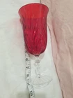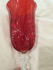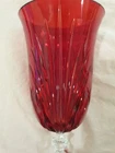 Beautiful Marquis by Waterford water, Iced tea Goblets. They are been used but in good condition, one of them has a small scratch which I showed in the photos. It is 8 2/8" tall Color they are Red with Clear Stemmed. Please see the photos for condition and Measurements