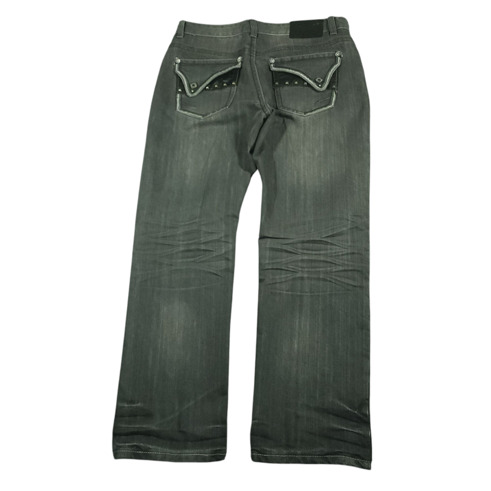 These Redemption 717 jeans are a killer find! The grunge flap pocket and distressed details give them serious edge, while the straight-leg fit keeps them comfy and versatile. The studded whiskering adds a unique touch, and the 55% ramie blend makes them breathable yet durable. Perfect for anyone into goth or streetwear styles—great condition for pre-owned, too!