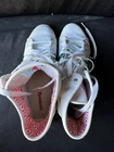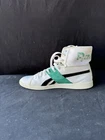 Elevate your athletic game with these Reebok Classic Hightop sneakers, perfect for women who want to look and feel great during their workouts. These sneakers come in a pristine white color and feature the iconic Reebok logo, making them a must-have for any sneakerhead. Designed with comfort in mind, these sneakers have a US shoe size of 9.5 and are perfect for any woman looking for a stylish and functional shoe. The Reebok Classic model is a timeless classic, making these sneakers a great addition to any wardrobe. Get ready to step up your workout game with these Reebok Classic Hightop sneakers.