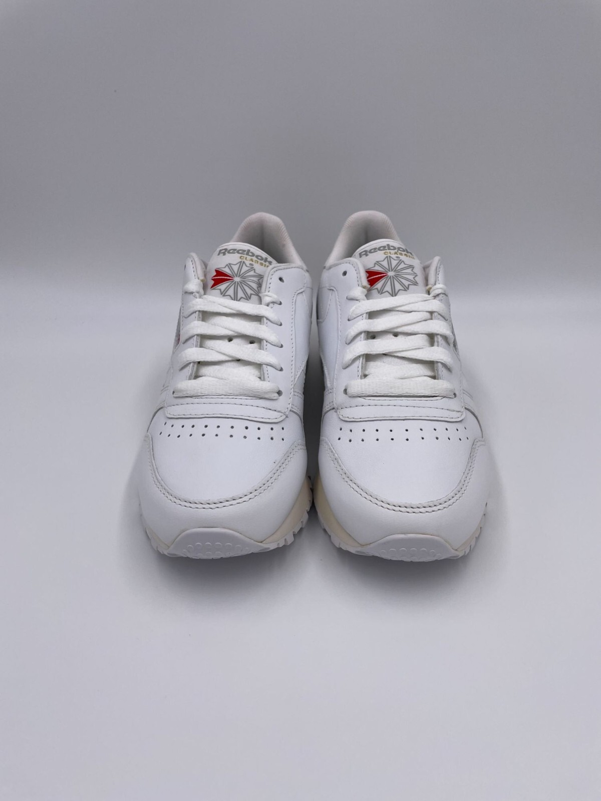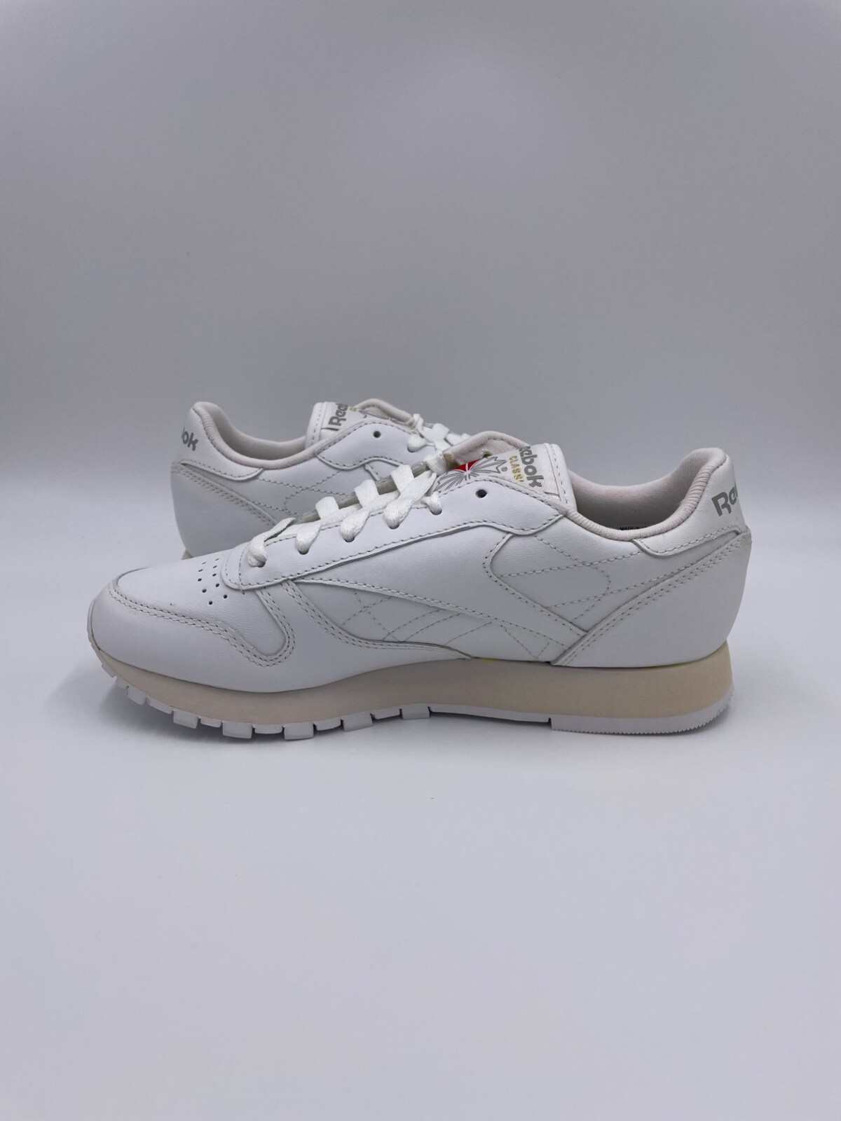 Authentic Reebok Classic Leather sneakers in White with Gum rubber sole. These women's iconic lifestyle shoes feature premium leather construction with timeless retro styling. Style code 9771. Perfect for casual everyday wear with classic athletic heritage and versatile design. PRODUCT FEATURES: Premium full-grain leather upper Foam midsole for lightweight cushioning High abrasion rubber outsole Die-cut EVA midsole for comfort Soft terry lining for comfort Iconic Reebok branding on sides SPECIFICATIONS: Brand: Reebok Product Line: Classic Leather Style Code: 9771 Color: White / Gum Upper Material: Leather Midsole: EVA foam Outsole: Rubber Department: Women's Type: Casual Sneakers / Lifestyle Shoes Closure: Lace-Up CONDITION DETAILS: Brand new in original box with all tags attached. Never worn. Box in excellent condition. Includes original tissue paper and documentation. ABOUT THIS PRODUCT: The Reebok Classic Leather is one of the most iconic sneakers in footwear history, originally released in 1983. This women's version maintains the timeless design with premium leather construction and the signature gum rubber outsole that adds retro appeal. The clean white upper with gum sole creates a versatile look that never goes out of style. These sneakers represent decades of heritage and have remained a fashion staple through generations. The soft leather upper molds to your foot for personalized comfort, while the cushioned midsole provides support for all-day wear. Whether you're a sneaker enthusiast who appreciates classic silhouettes or simply need reliable casual footwear, the Reebok Classic Leather delivers timeless style and lasting comfort.