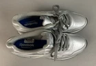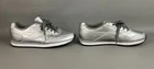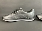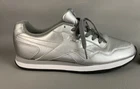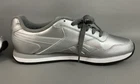 Elevate your sneaker game with these stylish Reebok Classic Royal Glide Leather Women's Trainers. These versatile shoes are perfect for any occasion, whether it's for activewear, casual wear, or workwear. The metallic silver, white, and black colorway, coupled with the iconic Reebok logo accents, give these sneakers a classic yet sporty look. Crafted with high-quality leather, these sneakers offer a comfortable and lightweight experience, making them ideal for running and jogging. The cushioned insole and breathable features provide added comfort, while the herringbone pattern and low top style add a touch of sophistication. These sneakers are perfect for a variety of activities, including tennis, cycling, and even yoga. Add these Reebok Royal Glide trainers to your wardrobe today and step up your style game. Excellent condition