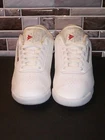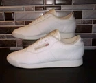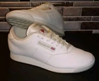 This is a pair of Reebok Classic sneakers for women in size 7, featuring a white leather upper with lace-up closure for a comfortable fit. The shoes are designed with cushioning and breathable fabric lining, making them suitable for various activities like activewear, casual outings, or workwear. With a low-top shoe shaft style and rubber outsole, these sneakers provide a classic and sporty look, perfect for all seasons. The design includes subtle accents like embroidered details and the Reebok logo, adding a touch of style to the overall athletic aesthetic.