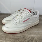 Reebok Club C 85 Vintage Cream & Red Men Size 11 Tennis Shoes Sneakers In very good condition. Gently worn. Has some sock fuzz inside.