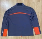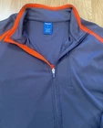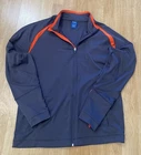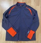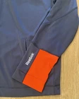 Elevate your training routine with this Reebok Men's Full Zip Jacket in Charcoal and Orange. Made from softshell fabric, this jacket features a geometric pattern and a stand-up collar for a stylish look. The full zip closure and pockets provide functionality, while the accents of a zipper and logo add a touch of personality. Ideal for casual occasions, this jacket is perfect for gym and training, hiking, and running and jogging. It is machine washable and available in size L. Don't miss out on this windbreaker style jacket that is perfect for the winter, fall, and spring seasons.