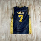 Show your support for the Indiana Pacers with this Reebok NBA basketball jersey. The youth medium size (10-12) jersey features the team's colors of black and yellow, as well as the player's number 7. It is officially licensed by the National Basketball Association (NBA) and is perfect for wearing to games during the regular season. The jersey is made in the Russian Federation and is designed for youth players. Get ready to hit the court or cheer on your favorite team from the stands with this Indiana Pacers jersey.