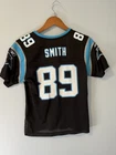 Show your support for the Carolina Panthers with this Reebok Steve Smith #89 jersey. Made with high-quality materials, this unisex children's jersey is perfect for any young fan. The black color and official NFL logo make it a great addition to any collection. This jersey is officially licensed by the National Football League (NFL) and is perfect for any football-NFL enthusiast. The M size and unisex design make it a great gift for any young fan. Get yours today and show your support for the Carolina Panthers!