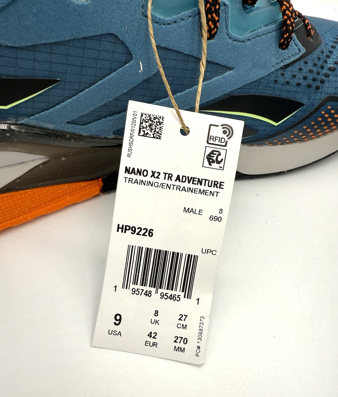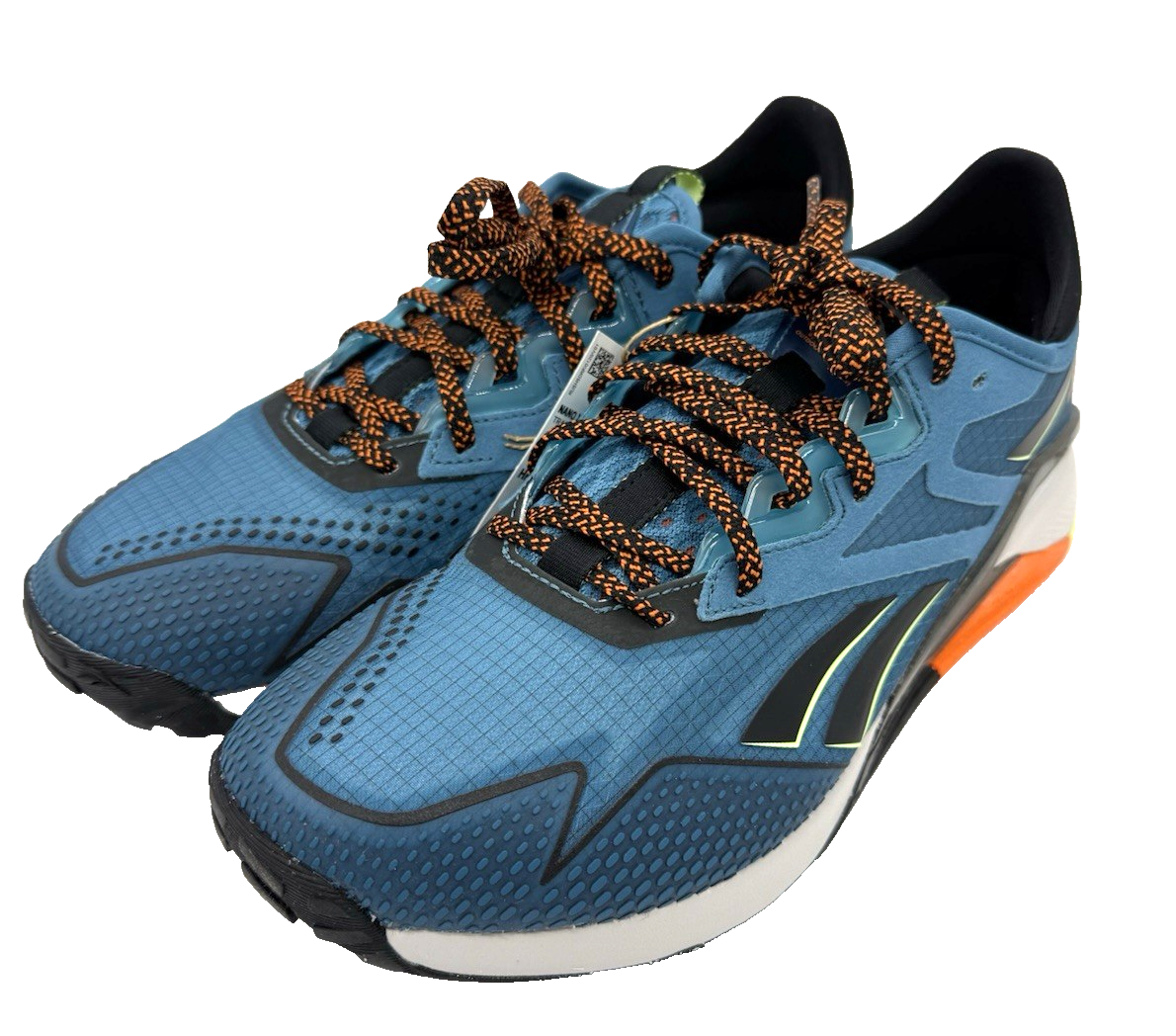 NEW Men's Reebok Nano X2 TR Adventure Steel Blue /Smash Orange Hp9226 US Size 9 About this item Unleash the Athlete Within: Workout the way you want - these versatile men's athletic sneakers enable you to jump, climb, and workout with complete confidence Superior Comfort & Support: Designed to help you optimize your workouts, these comfortable gym shoes for men provide the lightweight, responsive cushioning of running shoes, while maintaining the performance and stability of training shoes Signature Style: With the sleek shape and ultra-stylish design of these workout shoes for men, you'll crush your workout goals and look good doing it Next-Level Performance: Our men's athletic shoes are designed to help you conquer your fitness goals; Slip on a pair of our training sneakers for men and enjoy enhanced agility, speed, and endurance Move with Confidence: The perfect crossfit shoes for men, these training shoes are designed to handle cross-training sessions and intense workouts, from cardio and lifting to climbing and running