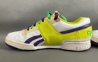 Please refer to photos for imperfections. There is some spots the on toe of the shoe. The fabric on the inside has fuzzy pieces stuck to it. This Reebok Pro-Legacy Low Ride sneaker is perfect for men who love athletic shoes with a vintage touch. The multicolor design and low-top shoe shaft style make it suitable for casual wear too. It comes in a UK shoe size of 9.5, US shoe size of 10.5, and EU shoe size of 44. The shoe is designed for riding and other activities, with a comfortable and durable build. The Reebok Pro Legacy model is known for its quality and style, making it a must-have for any sneaker enthusiast. Get yours today and step up your shoe game! No box