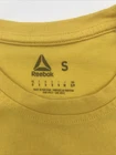 This is a Reebok Speed Wick T-Shirt for men in size Small. It is yellow with a logo accent and has a crew neck and short sleeves. Made of polyester and cotton, it offers a regular fit suitable for all seasons. The shirt is designed for sports activities and was manufactured in Pakistan for the Spring season. Check pictures for flaws and measurements