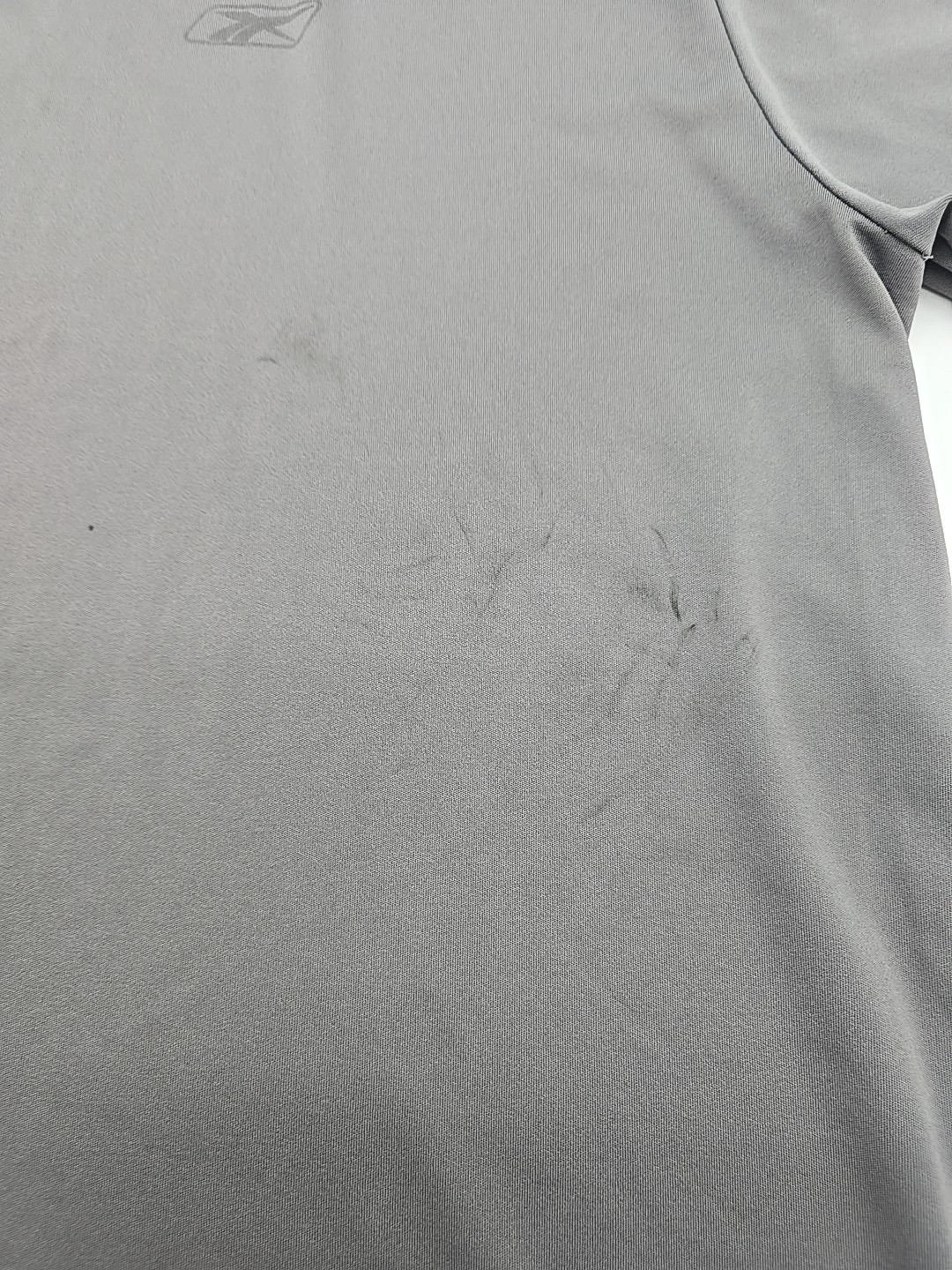 The Reebok T-shirt for men in XL size features a gray color with the iconic logo printed on the front. Made of polyester, this short sleeve shirt has a crew neckline and a regular fit, making it ideal for all seasons including fall and spring. The brand name, Reebok, adds a touch of style and authenticity to this classic wardrobe staple for men. Check Pictures for flaws and measurements