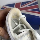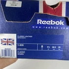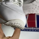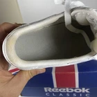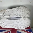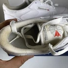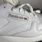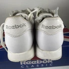 Elevate your sneaker game with these Reebok Classic white shoes. With a lace-up closure and low-top shoe shaft style, these sneakers are perfect for casual occasions or running and jogging. The rubber outsole material provides durability, while the leather upper material and synthetic lining material ensure comfort and breathability. These Reebok Classics are a perfect blend of retro and sports themes, making them the ideal choice for fitness enthusiasts or school-goers. The foam insole material adds to the comfort and breathability features, while the Blended Fabric fabric type ensures that the shoes are suitable for all seasons. With a solid pattern and Reebok logo accents, these sneakers are a must-have for any woman's shoe collection. Condition according to the photo, there are traces of wearing, the inner lining has changed color. No defects are visible from the outside