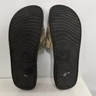 The Reef Stash Hawaiian Palm Tree Slides are a stylish and comfortable sandal option for men in size 11. The slip-on design with a padded upper and hidden pocket adds convenience and practicality to the Hawaiian tropical-themed slides. The black color and synthetic material make them versatile for various casual outfits, while the Hawaiian theme adds a touch of laid-back style to your ensemble. Perfect for a beach day or a casual outing, these Reef Stash slides are a must-have addition to any summer wardrobe.