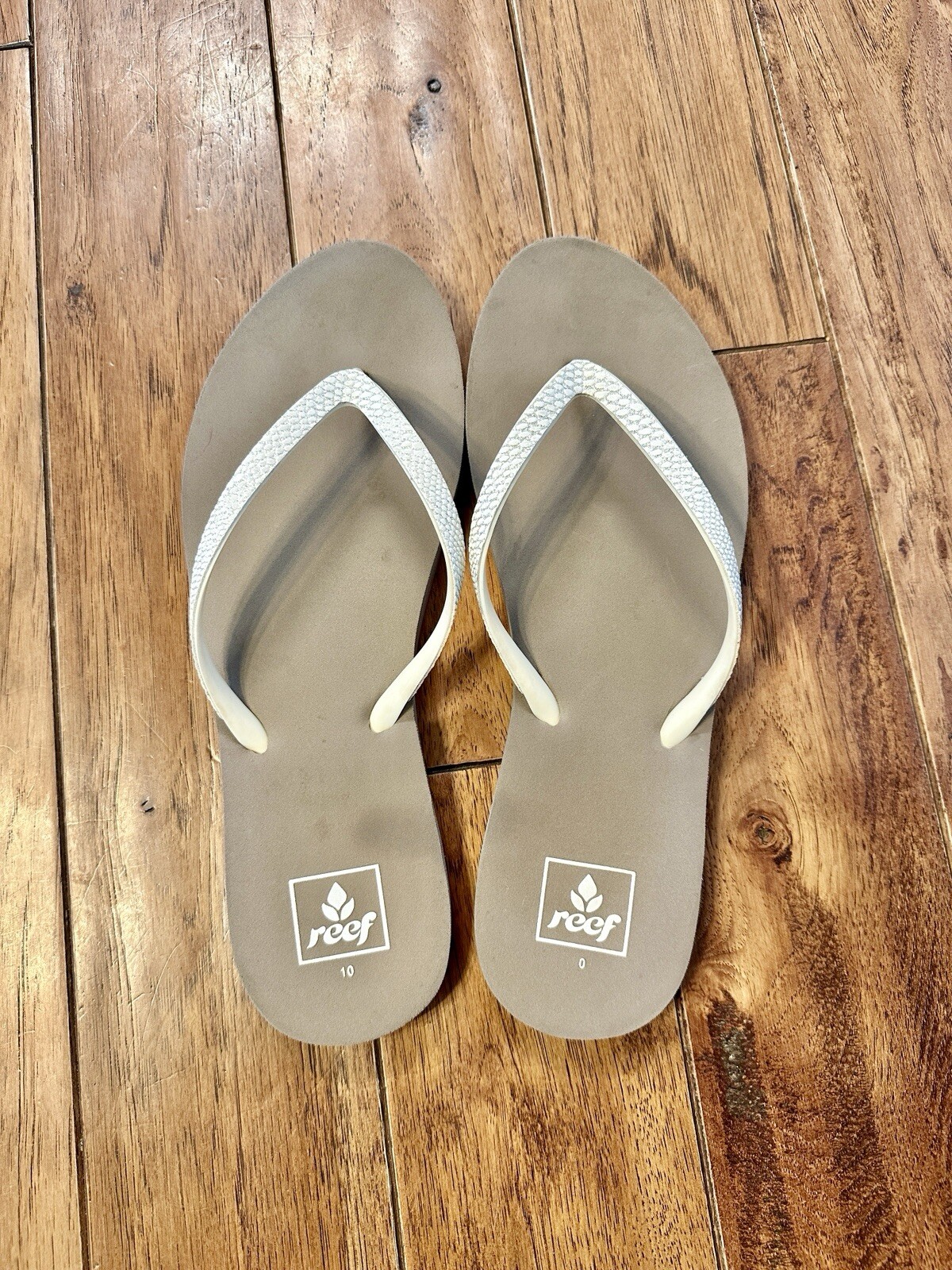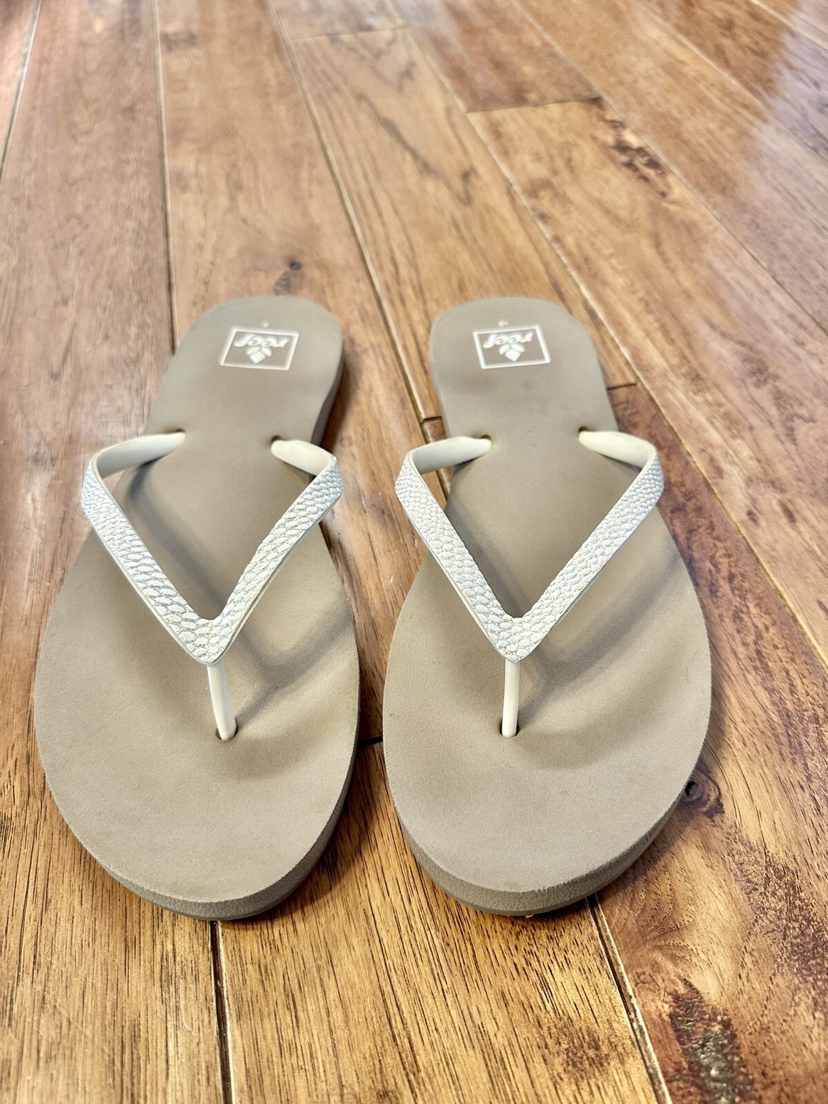 Reef Women's Stargazer Sassy Sandal Taupe Grey Size 10 . Great condition. - Thin soft dusted glitter strap - Soft eva footbed - Durable rubber outsole - Pvc free strap