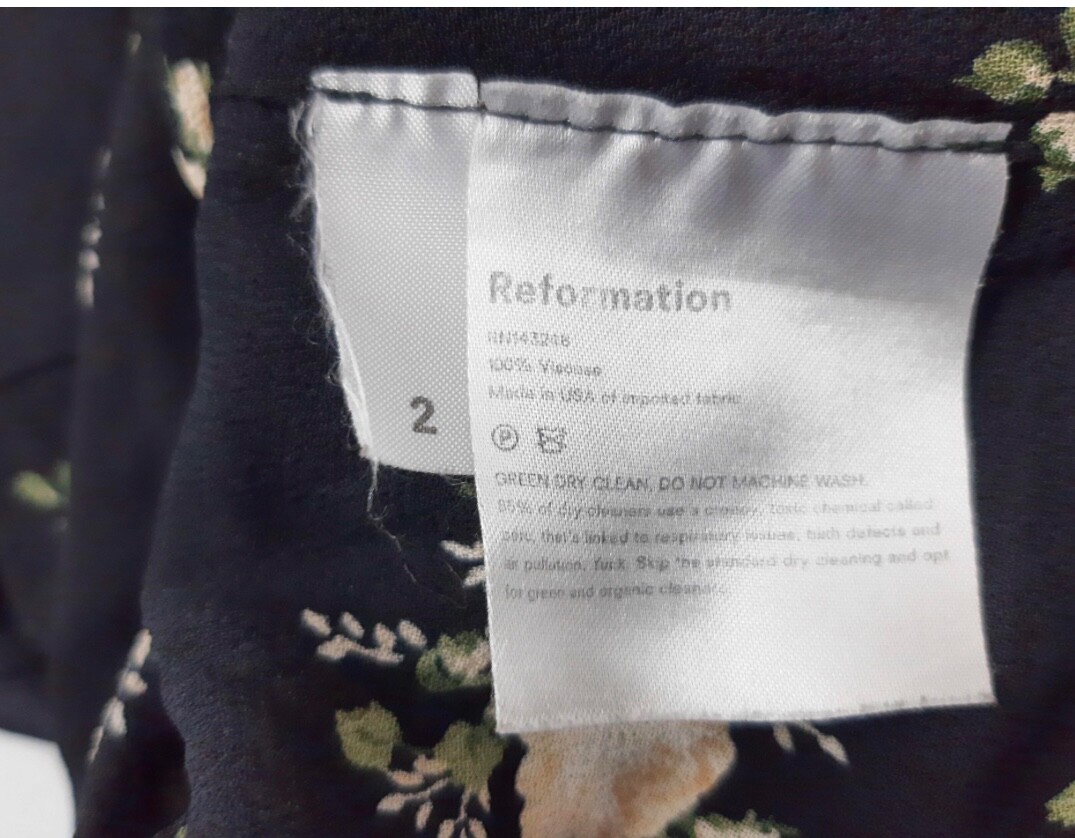 This Reformation Cassie Mini Dress in black is the perfect addition to any wardrobe. With a beautiful floral pattern and short sleeves, it's ideal for any occasion, whether it's a wedding, party, or casual outing. Made from high-quality viscose material, this dress is comfortable and stylish. Its regular size type and short dress length make it perfect for women who want to look and feel their best. The flower theme adds a touch of elegance to the dress, making it a must-have for any fashion-conscious woman.