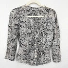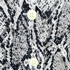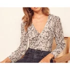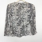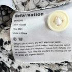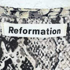 Brand: Reformation Size: 4 Measurements: Please see last photo for approximate measurements. Condition: In excellent pre-loved condition. Color: black, gray, cream Material: Viscose Features: Lightweight flowy fabric Deep V neckline Button front closure Long sleeves Dart stitching to cinch in near waist Style: animal print, office, office life, girl boss, boss babe, boss, business, professional, return to work, business casual, smart casual, career, classic, office wear, work outfit, office attire, corporate, wear to work, 9to5 style, dress for success, flowy, lightweight, contemporary Model photo is meant to be representative of style and is not the actual item being purchased.