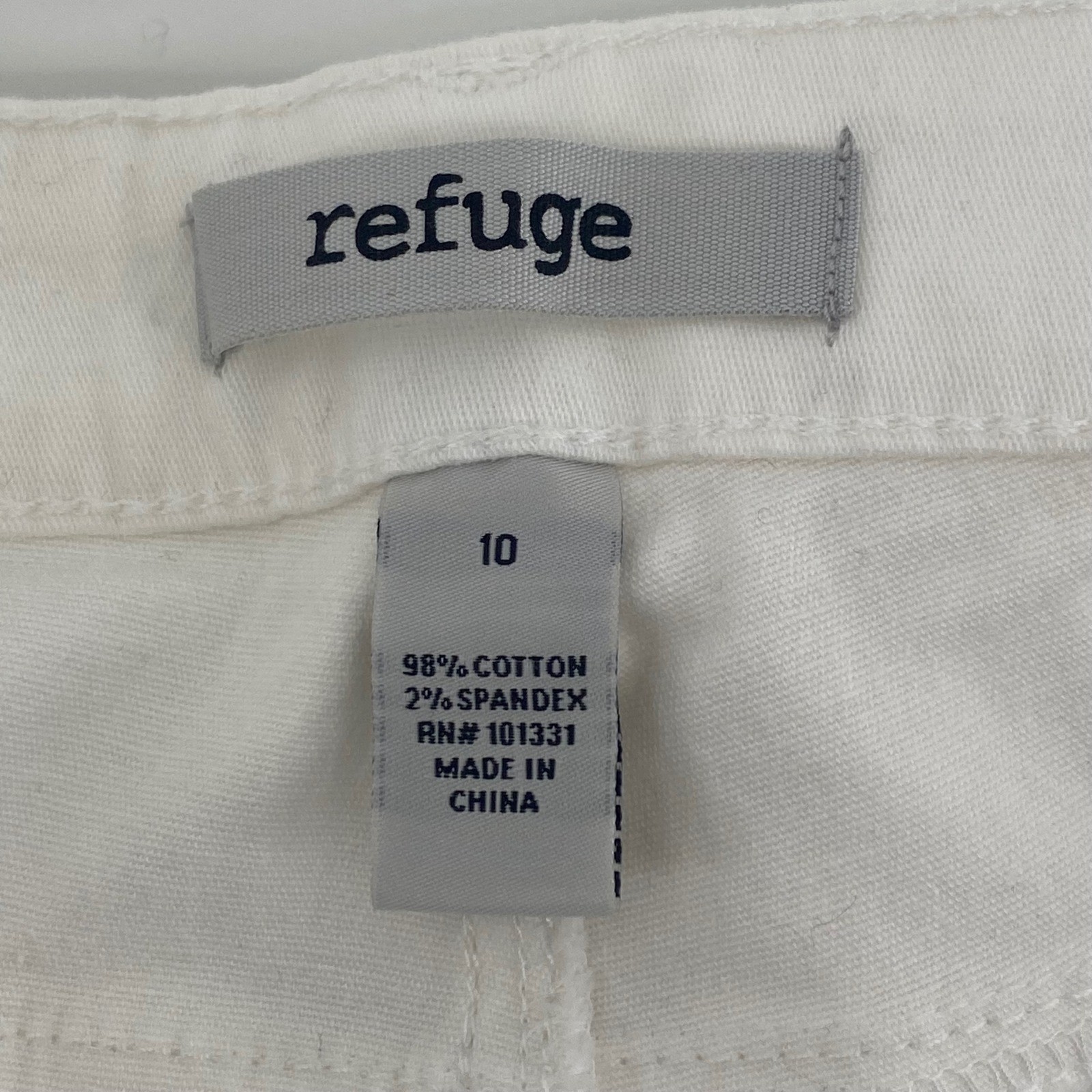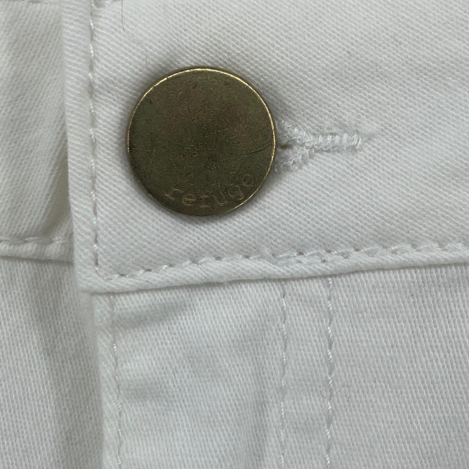 Refuge white skinny jeans offer a clean, classic look with a comfortable stretch denim construction. These five-pocket style pants feature a zip fly with a branded brass-tone button closure and tonal stitching throughout. The cotton-blend fabric provides a soft feel with just enough spandex for a flattering, flexible fit that maintains its shape. Measurements: • Inseam: 29"