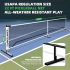 Return Policy Fast Delivery Trusted seller Regulation Size 22 FT Pickleball Net Set with Metal Frame and PE Net,Portable Pickle Ball Net System for All Weather Condition and Windproof, Indoor and Outdoor, Backyard and Driveway Product Description 【Easy to assemble and disassemble】The pickleball net system is designed easy to set up especially following our product manual, within 10 minutes only by one single person is enough.Taking apart is even easier and faster. We use fewer components and briefer method, and every part is marked by numbers. 【Durable 22 FT PE net】Full size 22 FT PE pickleball net, 36 inches high on both side, 34 inches high in the middle.It is regulation size for USAPA pickleball tournament and training.PE net is extremely durable and sturdy, you can use it for several years and not easily split. 【Sturdy metal frame】 Each pickleball set has a fiberglass rod, 11 thick metal tubes and 3 bases, well lacquered, firmly welt at the joint. They won't easily bend or fracture for years. 【Indoor and outdoor for all weather condition】You can assemble our pickleball net set indoor and outdoor standard pickleball court, or even backyard,driveway and park.The whole system stands on the ground very firmly, it has a good wind resistance and water proof, you can play pickleball in all weather condition. 【Portable and small volume】We provide a portable durable canvas handbag for putting every parts of pickle ball net set into it,it is light weight and small volume, you can put it in any corner of house and also take it anyw in the car trunk. Shipping Returns Payment Shipping Shipping is FREE to all addresses other than APO/PO boxes in the lower 48 states. All our stock ships from US-based warehouses. Shipped via USPS or UPS (depending on location and package weight) Unless stated otherwise, all orders will ship within 24-72 hours of your payment being processed. Check our feedback to see the great reviews of FAST shipping we offer. Returns Seller does not accept returns Payment We currently accept payment via eBay managed payments only. Once payment is cleared, we will dispatch your shipment within 1-3 business days. Please refer to the "Shipping" tab for more information regarding shipping speed to your destination.