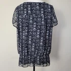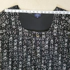 Reitmans Plus Petite 18 Top Pullover Sheer Cap Sleeve Lined Body Size-18 PLUS PETITE Color-Black, Gray Pullover Lined Body Sheer Cap Sleeve Elastic Waist With DecorativeTie At Side Waist Super Cute Pattern Made In Canada 100% Polyester Machine Wash/Tumble Dry Measurements Laying Flat Approximate: Across Shoulders-17" Chest-23" Sleeve-7" Length-25.5" Office Casual Date Travel Pre-owned Condition Every Effort Has Been Made To Accurately Describe & Photograph This Item. Some Colors May Vary Depending On Lighting & Device Used To View. Please Reach Out If You Have Questions Prior To Purchase. I Am Happy To Help Shipping From A Smoke & Pet Free Facility